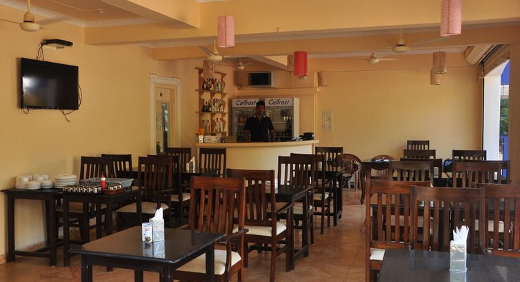 В отеле на первом этаже есть замечательный ресторанчик с очень терпеливыми, тактичными официантами, русским меню и живой музыкой, пением, караоке или просмотром футбола по вечерам. Ассортимент блюд достаточно большой. На любой вкус. Есть континентальные блюда, итальянская кухня, индийская, гоанская и т.д. Есть блюда от шеф-повара. У нас в стоимость входил завтрак (это тосты, масло, джем и кофе, чай или сок на выбор). К завтраку вы можете заказать что-то из меню, например, омлет стоил 50 рупий, омлет с грибами 60 рупий, картофель фри 90 рупий, сок свежевыжатый 90 рупий. По специям - как везде, если не любите острую пищу, просто скажите об этом, и вам сделают либо с меньшим количеством, либо вообще без специй.