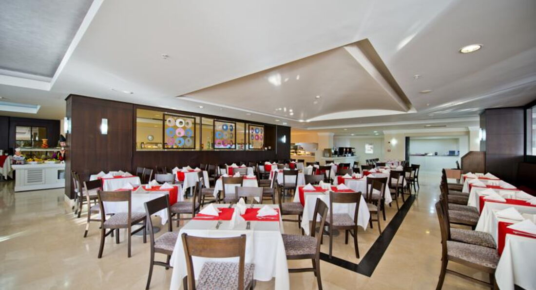 Бари та ресторани: головний ресторан розрахований на 500 осіб (критий, з кондиціонером, літня тераса, дієтичне меню, дитячі стільці), лобі-бар (24 години), бар біля басейну (10:00-24:00), бар на пляжі (10:00-21:30), вітамін-бар (10:00-21:30), диско-бар (24:00-05:00), шиша-бар (10:00-24:00) та ін. 3 ресторани A la Carte: турецький, далекосхідний, італійський - відвідування безкоштовно 1 раз за час проживання, за попередньою резервацією.