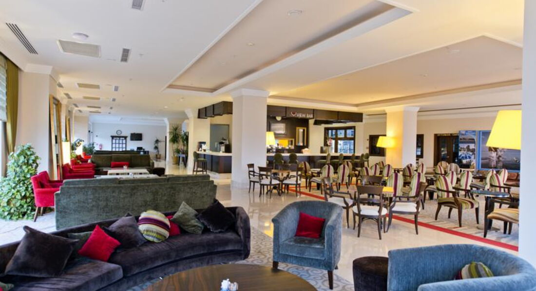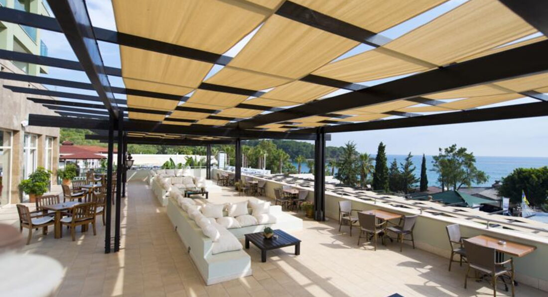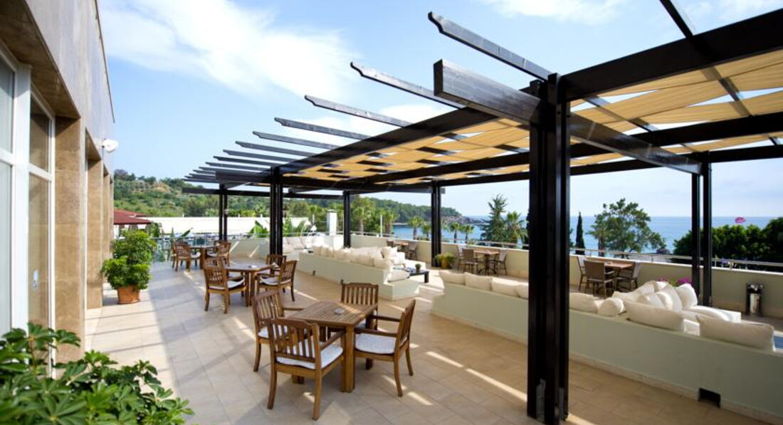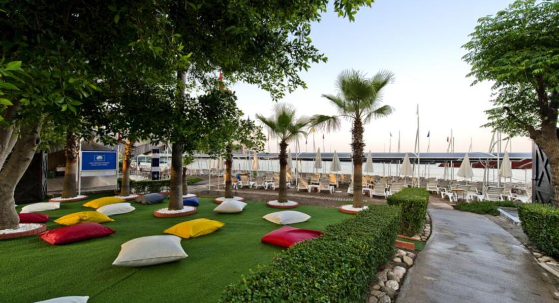 Всем читающим привет ! Впечатления от отеля положительные за те деньги , что мы заплатили (62 т.р за 10 дней ) ! Есть русскоговорящий персонал , всегда помогут во всём ! Небольшая, но очень красивая и ухоженная зелёная территория , садовнику 5+ ! Много баров , это удобно ! Жили в 5 корпусе , плюсы, рядом всего один номер. Хотя шум везде одинаков , кругом одни отели, музыка, анимация и т.д и куча маленьких детей , особенно шум когда привозят железные кеги с пивом и прочим ! Номер, конечно маловат для отеля 5*, но все для удобства было, все в рабочем состоянии. Пляж хороший , но лежаки стоят очень близко друг к другу , это минус , хотя весь залив в вашем распоряжении, взяли полотенца и пошли куда захотели и легли на песочек ! Заход в море удобный и сразу идёт глубина ! Слева от Вас будет сосновый лес , где мы гуляли почти каждый день после завтрака , есть старые развалины и остатки стен , кому интерсно поищите в инете , виды просто отличные ! Интересно поплавать и с маской в этом месте , если повезёт можно увидеть и черепах. Справа идут отели и остров на который за 15 баксов можно отправится на катамаране с отеля за мысом или в плавь если хорошо плаваете ! Минусы по пляжу , старые вытертые полотенца ! Аниматоры кому то нравятся , кому то нет . Утром как в других отелях не проходят и не здороваются на пляже ! В 10 ч старое музыкальное приветствие , которому уже точно лет 10 ! Вечерня анимация то же самое ! Хороший ресторан с террасой с красивым видом ! Еда нас устроила , без изысков, из фруктов яблоки двух видов, апельсины, грейпфрукт, мушмула, иногда давали бананы и один раз клубнику ! С отеля удобно добираться в любую сторону на бусах , хоть в Сиде , хоть в Аланию ! Цены средние 1-2 бакса с человека , остановки везде ! Для шопинга рядом Алара базар и 350 павильонов ! Просто перейти автобан по подземному переходу . Цены намного дешевле будут чем у нас если умеете торговаться , есть хорошие вещи, есть ширпотреб ! Ходили на местный рынок в деревню Акужджалар по вторникам , специи , фрукты , ягоды , овощи и т.д цены смешные ! Про экскурсии не пишу , всё осмотрели раньше , кому интересно , удобно добираться до Кападокии, место очень интересное и запоминающееся, такого нигде не видели ! Местное турагенство есть прям напротив отеля и на Алара базаре ! Деньги берут любые , есть обменники и т.д Вообщем Турция и турки нас ждут, отношение доброжелательное !