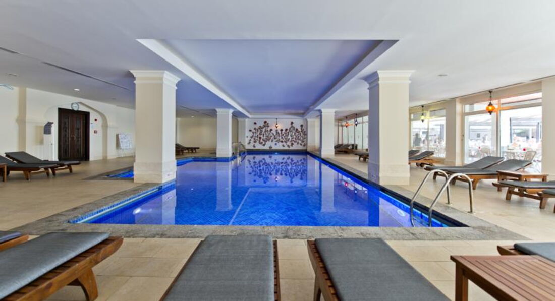 Територия отеля небольшая, но очень ухоженная и удобная. Великолепный SPA - сауна, хамам, парная, релакс-комната, крытый бассейн, джакузи, тренажерный зал, все бесплатно. Wi-Fi на всей территории отеля бесплатно, подключают на ресепшене, но работает порой с перебоями. В отеле каждый найдет место как для спокойного отдыха (релакс зона с гамаками и большими подушками, верхний бассейн -за 2недели не видела в нем ниодного ребенка,бар в холле отеля), так и для активного (центральный бассейн с горками, бар, пляж, анимационная зона)