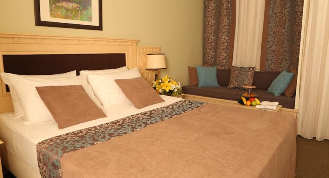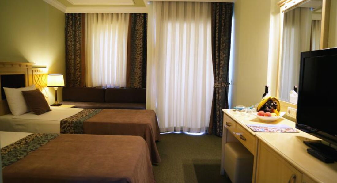 Отдыхали с подругами. В принципе положительные впечатления. Еда очень вкусная, персонал отзывчивый, хотя нам и умолчали, что при выезде должны были нам дать туристические сумки, а так как мы выезжали ночью, то все ушли. Еще это один из немногих 5* отелей, где не дают ланчи при выезде на экскурсии. Анимации практически нет- развлекали себя сами как могли......( анимация-2 человека очень плохо говорящих на русском) Комнатки чистенькие, уютные, но возникали проблемы со счетом - человека 3, а полотенец -2 пары. Из развлечений- там часто проходят свадьбы- тнтересно было посмлтреть))). Море близко, правда в час пик не хватало лежаков. А вообще это конечно семейный отель, ни как не молодежный.