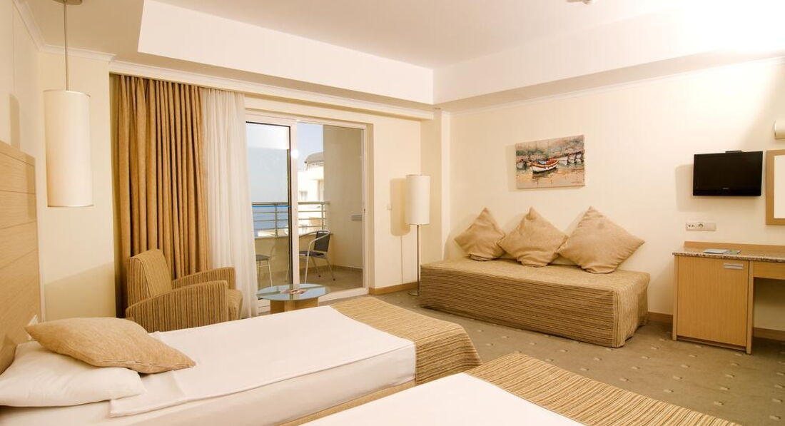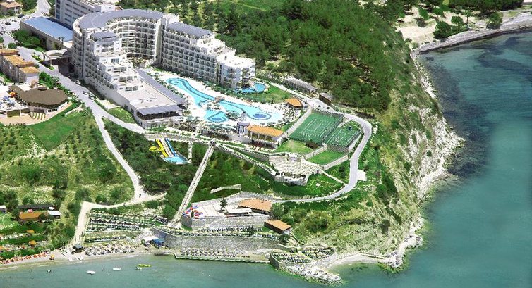 Територія та послуги: • відкритий басейн, 1000 кв.м, глибина 1,40 м • басейн із морською водою, 245 кв.м, глибина 1,20 м • басейн аквапарку, 90 кв.м, глибина 1,40 м • критий басейн, 135 кв.м, глибина 1,30 м • головний ресторан • 4 а ля карт ресторану - далекосхідна кухня, середземноморська, морепродукти та турецька кухня • снік-бар, бар на пляжі, бар біля басейну, лаунж-бар, кондитерська/морозиво, бар на терасі • 5 конференц-залів • обмін валюти • Wi-Fi (безкоштовно, у лобі) • пральня • медичні послуги • перукарня Розваги та спорт: • сауна, хаммам • софт-анімація, денна та вечірня • жива музика • фітнес зал • більярд • настільний футбол • шахи • нарди • дартс • настільні ігри • тенісний корт (освітлення та обладнання платно) • міні-футбол • волейбол • баскетбол • настільний теніс • СПА-процедури платно • водні види спорту платно • уроки дайвінгу платно • ігрові автомати платно Для дітей: • дитяча секція у відкритому басейні, 41 кв.м, глибина 0,20 м • дитяча секція у критому басейні, 20 кв.м, глибина 0,20 м • дитяче ліжечко, за запитом • дитячий буфет • міні-клуб (4-12 років) • міні-диско Живлення: • UAI - Ультра все включено В концепцію входить: сніданок, обід, вечеря - шведський стіл, пізній сніданок, нічний суп, снекі, солодощі - у певний час, аля карт ресторани (при проживанні від 7 ночей, одне безкоштовне відвідування, по резервації), безалкогольні та алкогольні напої місцевого виробництва. Напої класу Преміум, свіжі соки, напої, що не входять в концепцію - платно. Пляж: Власний піщано-кам'янистий пляж знаходиться за 10 м від готелю (вниз по схилу). Шезлонги, парасольки, пляжні рушники – безкоштовно. Бар на пляжі (12:30-17:00). До оплати приймаються кредитні картки: Visa, MasterCard, AmEx.