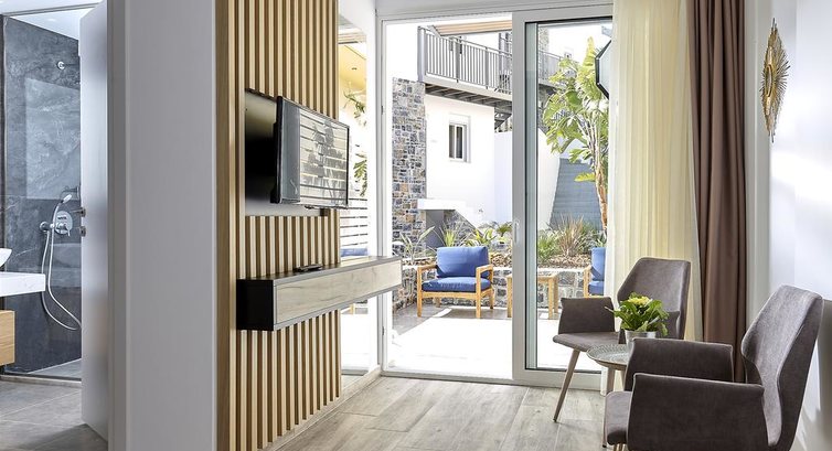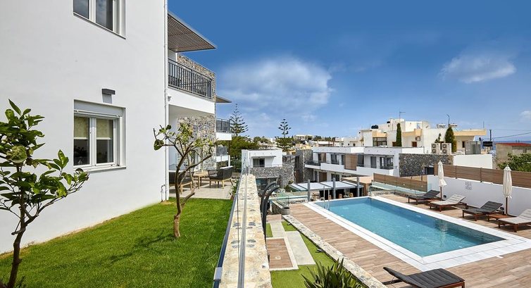 Новий комплекс апартаментів у популярному курортному містечку Агія Пелагія. Оформлений у сучасному стилі. Усі номери з обладнаною кухнею. На території є 2 басейни та бар, який подає напої та закуски протягом дня. Через наявність великої кількості сходинок не рекомендуємо людям з обмеженими можливостями пересування. Рекомендуємо для відпочинку пар, сімейного відпочинку та дружніх компаній. Новий комплакс апартаментів, збудований у 2018 році.