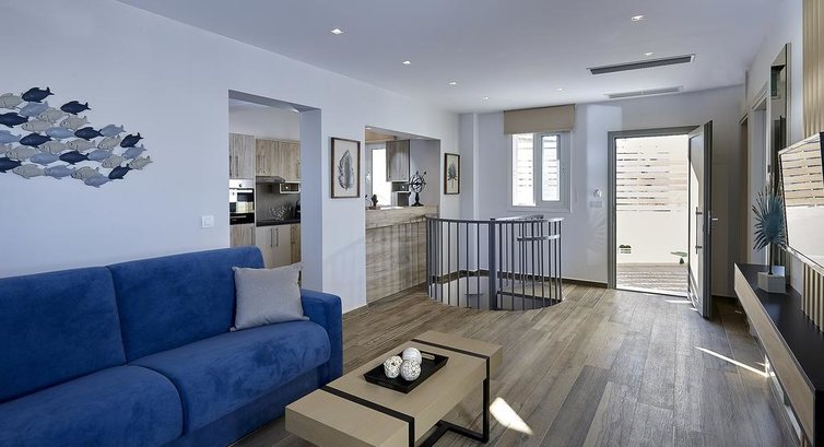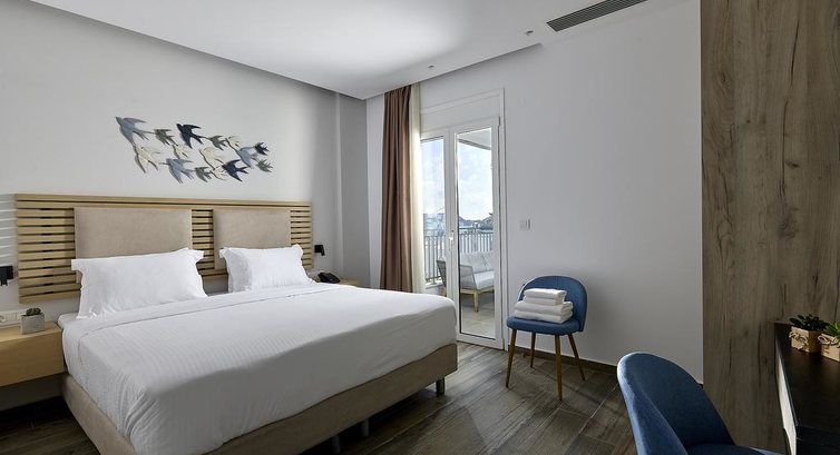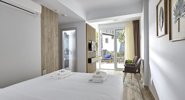 • Deluxe apartment 1 bedroom SV/PV (вид на море або на басейн, спальня та вітальня, осн. ліжко – двоспальне, дод. – двоспальне софа, обладнана кухня, столова зона, макс. 4 чол., 48 м2)
