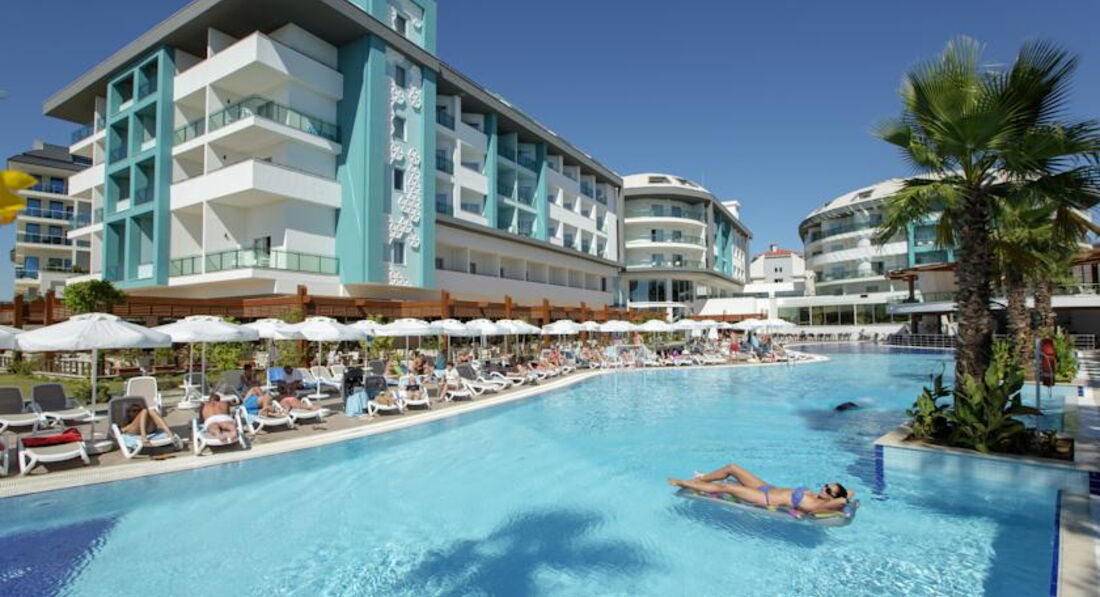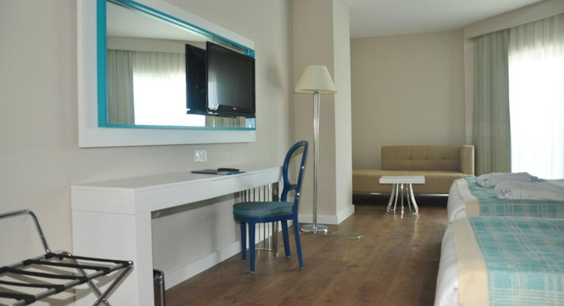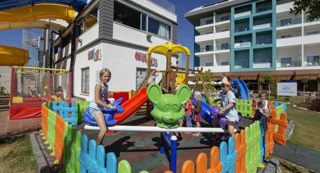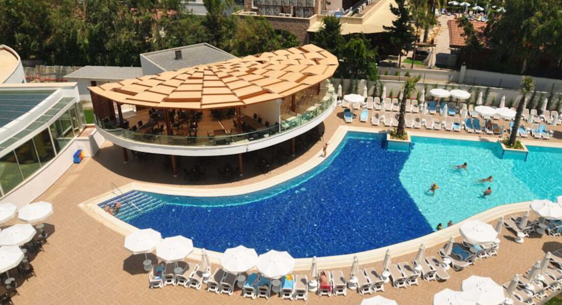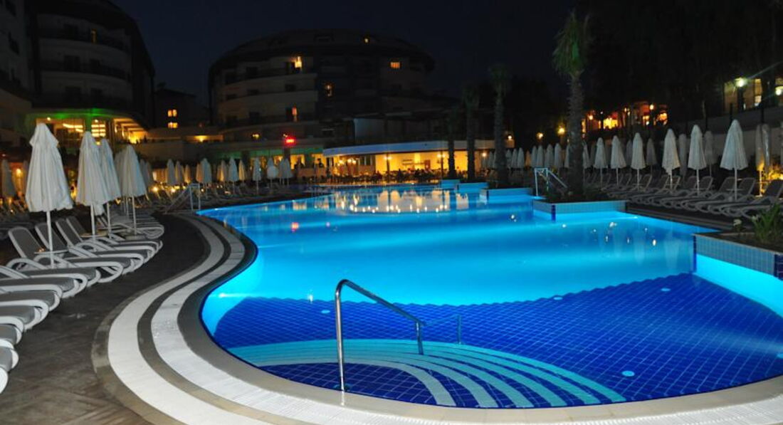 Отдыхали с 1 по 15 августа 2015, отель в целом неплохой, своих денег оправдывает, мы брали на раннем бронировании за 200 на 3-е взрослых и 2 детей, номер был семейный ( двухкомнатный, балкон метров 10, дети только там и бегали)). Менее чем за 2 месяца цены выросли почти в два раза 360 на 5-х, вот на эту цену отель уже не тянул. Еды как тут писали раннее в принципе много, но она однообразная, и к концу первой недели уже надоела, иногда начали пропускать либо обед либо ужин. Что касается фруктов: как тут писали много фруктов, это не так. Может конечно не сезон у них в августе, но ни клубники ни черешни как писали никогда не было. Из фруктов выбор очень маленький арбуз, дыня безвкусная, яблоки, апельсины и грейпфруты с виду ужасные. Виноград выкладывали только на обед и ужин, на завтраке совсем скудно все, даже арбузы белые, были сливы, нектарины редко раза два в неделю и то вначале, если не успеешь взять то больше не выкладывают. По поводу фруктов все. Из рыбы: тут писали раннее разнообразная рыба) во сновном это мелкая костлявая рыбка, было вкусное только филе, но давали его через день. Иногда по праздничным дням подавали форель на гриле. Остановлюсь подробнее на детском меню для деток до 2-х лет, так как мы были с 1,4 годовалым. Отдельного стола для них нет. Утром кашка всегда одного вида- рисовая) вот мы и ели её по утрам целых две недели) чередуя иногда с омлетом! Надеялась я на йогурты ( так как в отдыхая в других отелях Турции йогурты давали везде), но их там нет. Днем два вида супа, обычно один был острый, другой нормальный, просто суп пюре без ничего). Приходилось брать суп и добавлять что то из мяса или рыбы, и овощи. Блендер брала с собой. Но видно увидев меня с ним, персонал сделал уголок для таких как я), поставили блендер, еще что то. Вроде про еду все. Раз в две недели устраивают гала концерт, красиво оформляют столы на улице, большой праздничный торт из мороженного, салют. По поводу уборки: убираются ужасно, полы практически не мыли , пыль тоже не протирали пока мне не пришлось пожаловаться. Даже чаевые не спасали ситуацию. Видно думали что прокатит замена полотенец, заправка кровати и заполнить холодильник. После жалобы картина немного поменялась. Полотенца иногда мне казалось даже не меняли, а просто их складывали аккуратно в ванну, так как иногда попадались мокрые сразу после уборки(( и свежестью ни полотенца ни белье абсолютно не веяло(. Подушки были очень высокие жесткие(. Море чистое, к обеду уже мутноватое от большого количества людей, пляж хороший песок. Мы уходили правее от отеля, там народу значительно меньше, напротив шатров с соломенной крышей. Что касается детских развлечений. Мини диско 30 мин, естественно все не на русском. Думала дочка будет там танцевать, но ей было не интересно. Днем объявляли для детей развлечения в детском клубе, но туда мы ни разу не ходили, поэтому сказать что там не могу. Детская площадка очень маленькая. Перейдем к самому главному! Отдохнув 3 дня дети заболели((( сначала младший, потом на следующий день старшая. Оба температурили((( у старшей даже было 39,8 поехали в скорую. Итак дней 5 мы проболели((( ездили по педиатрам, пили сначала один антибиотик, через 4 дня поменяли его, так как температура сохранялась высокая((( сделали капельницу. Ситуация облегчилась. Потом сопли, их долечиваем до сих пор дома. Видела в лифте совсем ужасную карт