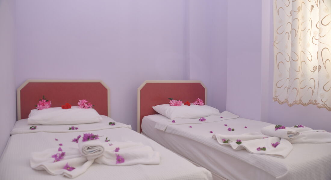 Единстенным плюсом этого отеля является относительно близкое расположение к пляжу. Остальное только минусы. питание просто кошмар, ребенку сок давали только 3 дня из 8, и только по просьбе. Завтрака, как такового, вообще нет! На обед и ужин одно и то же, они умудрялись даже картошку фри несколько раз жарить! Суп давали вечером, но есть его мы не рискнули, на вид просто кошмар! Мы не расчитывали на супер питание, но к такому были не готовы! Фруктов не было, только арбуз пару дней давали на ужин. Ругались и с хозяином, и с отельным гидом, Эвреном, но толку не было никакого. Про гида хочется написать отдельно, такого еще никогда не встречали, он не явился на инфо-встречу, а потом врал 3 взрослым людям, что приходил, кричал на меня, пока муж не поставил его на место, хамил, врал, вел себя не подобающе занимаемой должности, очень надеюсь, что его уволят за такое поведение!!! В номерах убирали через день, т.к. на весь отель одна женщина уборщица.