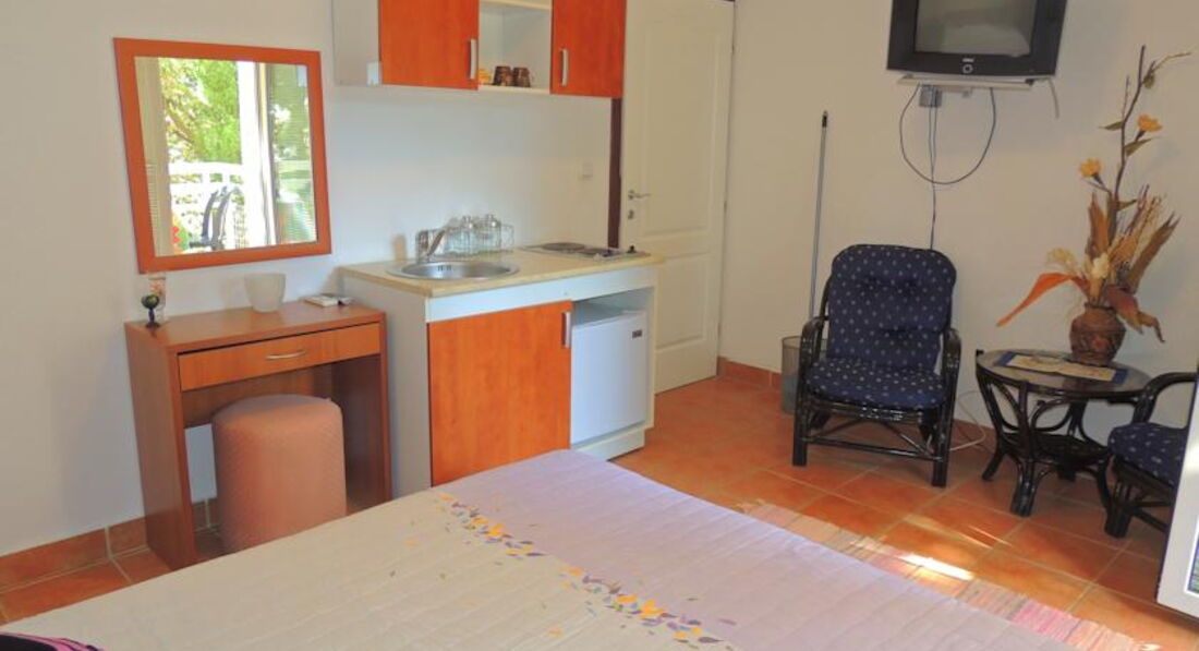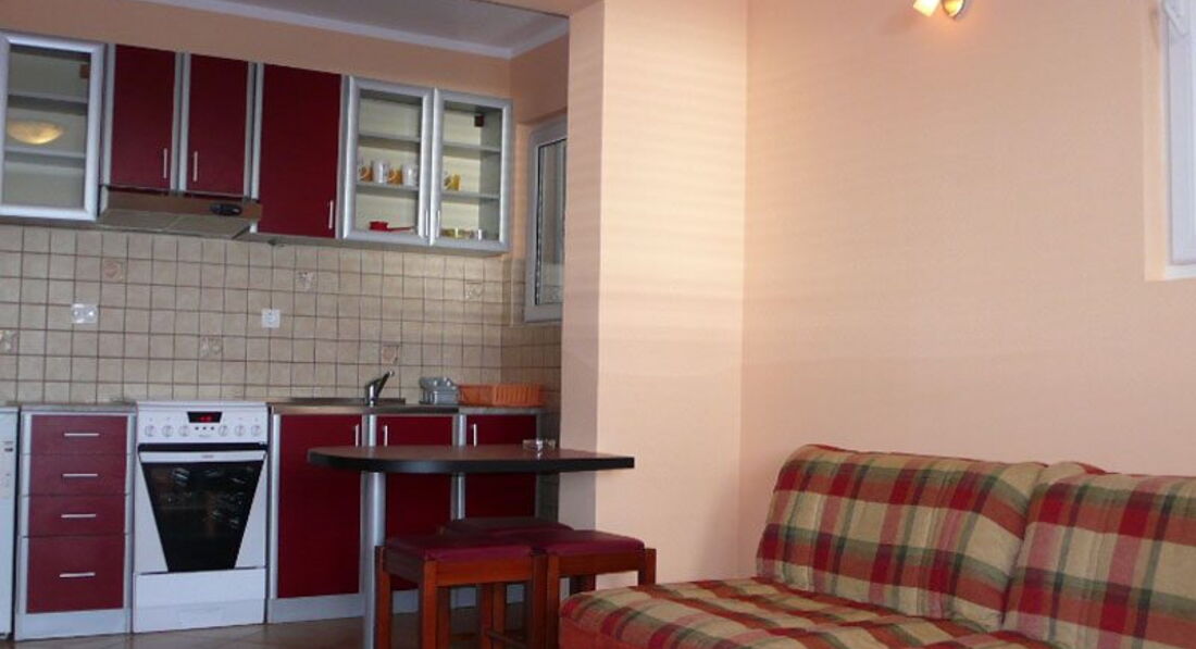 APP 04+2 (25м2 - 35м2) спальня з французьким ліжком, вітальня з розкладним диваном, двома розкладними кріслами та кухонним блоком, балкон з видом на море. Максимальна кількість гостей у номері 6