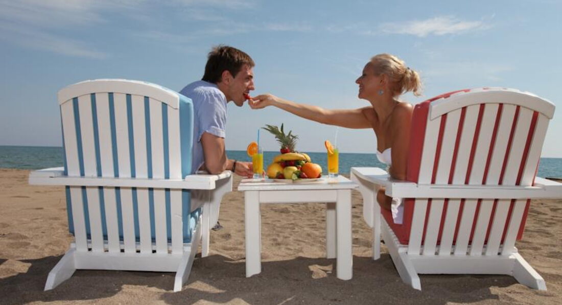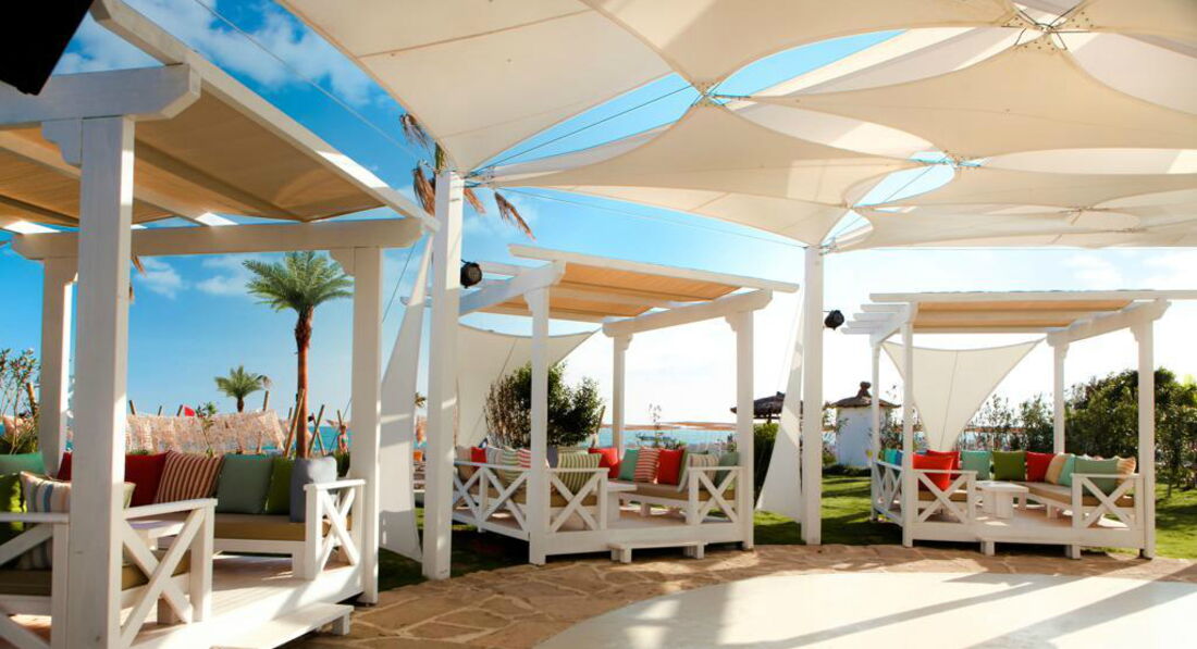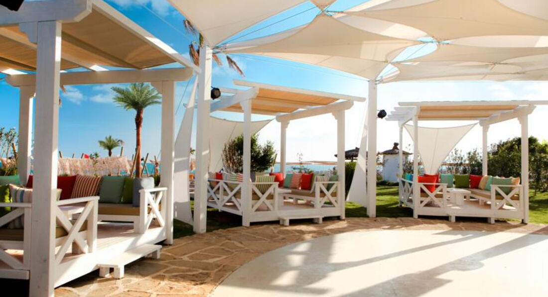 Большой ухоженный пляж, с местами проблем нет в любое время ( читала отзыв, что нужно занимать в 6 утра- чушь!!) Есть лежаки двухспальные- матрасы, удобно кто с грудными детьми. Пляж очень красивый, с пальмами- похоже на Доминикану.