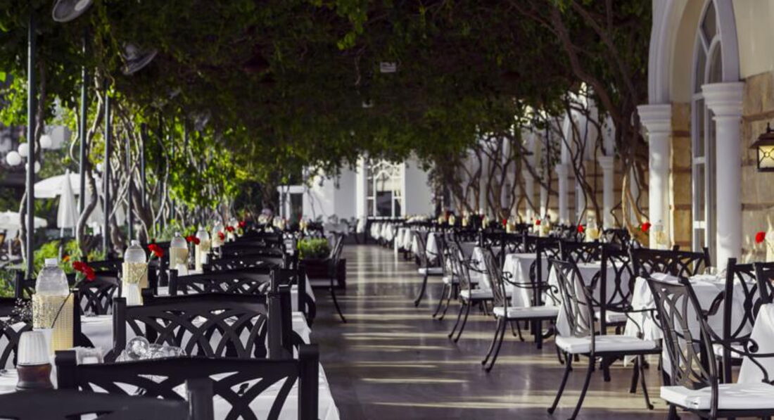 Отдыхали в отеле в августе -сентябре 2018 года. Ранее была в этом отеле лет десять назад. Он произвел на меня сильное впечатление, понравилось все, вот и решили приехать с внучкой 5 лет, Отель по прежнему красив, но питание и пляж разочаровали. Вроде много еды, а выбрать нечего. Приготовлено не вкусно, много специй, иногда в мясе середина не прожаренная,но в то же время куски подгорелые рыба костлявая, второсортная . Деетический стол ужасен, муж питался именно с этого стола, полусырой рис, гречка, пересоленное пюре, та же костлявая рыба. Накормить ребенка проблема . Детский стол состоял из несъедобного супа, ( впрочем супы были все отвратительные) , пюре картофельное, гороховое, морковное и сосиски, нагеттсы и все ... Вру ...один раз видела тефтели ... в тарелках ...побежала , а их уже нет ! Более менее завтраки, если повезет с поваром, то блинчики будут в форме цветочка и не горелые, каши разные , съедобные . Фруктов много, но все полуспелое,жесткое , кислое. Брали несколько раз персики,ели их спустя два дня, доходили. Первые дни были вкусные арбузы и дыни, потом стали резать комбикорм, по другому не назовешь, дыня без вкуса и переспелый,не сладкий, трухлявый арбуз.Когда готовили гриль на улице , то вообще,хоть на ужин не ходи, все горелое.И огромные очереди за едой.
