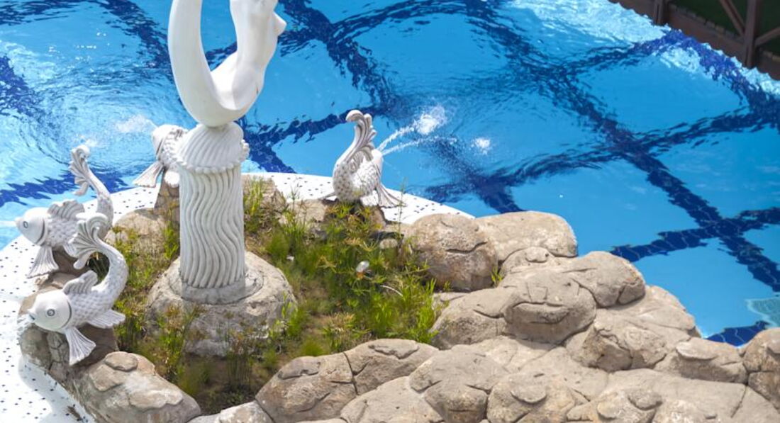Территория отеля очень большая и зеленая! Все в цветах, пальмах, ручейках. На территории большое колличество скульптур, вообщем места для красивых фото полно! 4 бассейна-главный бассейн с джакузи и фонтанчиками, олимпийский бассейн и два Релакс бассейна в зоне бунгало. В главном бассейне зона для малышей. Максимальная глубина всех бассейнов 140 см.