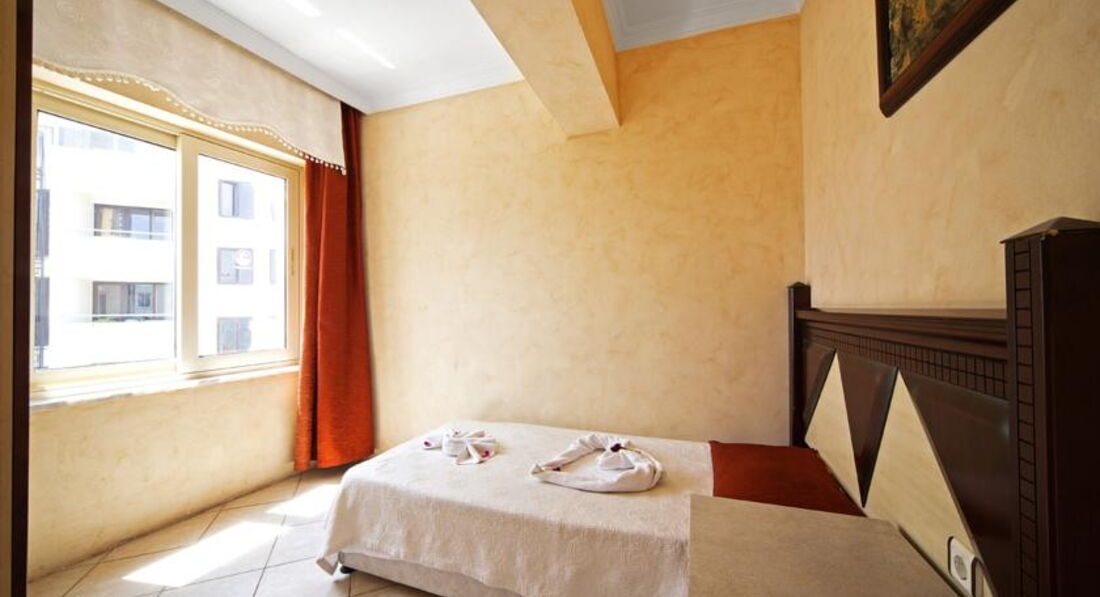 Спустя 3 месяца, но все же оставлю свой отзыв. В Турции были в первый раз (отдыхали вдвоем с подругой). Прилет был ранним утром (туроператор Интурист), по дороге из Даламана гид объяснила, что заселение в номер производится в 14 часов, по возможности заселят раньше. Вместе с нами было еще 7 человек, ожидающих заселение, всех разместили после 14. Номер получили нормальный без доплаты, с видом на проспект (не самый плохой, учитывая, что некоторые номера выходят во внутренний двор, где не очень-то и красиво). Питание немного огорчило, мы не привередливы в еде, в основном ели рис и овощи. Еды не много, каждый день одно и то же. Были фрукты-яблоки, арбуз, апельсины. Сладости - пирожные (очень сладкие). Из алкогольных напитков попробовали там только пиво (что-то безвкусное, не понравилось).Уборка была не каждый день, хотя, уходя мы вешали табличку, что необходимо убраться. На весь срок арендовали сейф, но наверное, можно было этого не делать, потом оставляли вещи и деньги в номере, ничего не пропало. Контингент туристов - очень разнообразный по национальностям, по возрасту- в основном это не молодежь.Море в минуте ходьбы, рядом с отелем общий бесплатный пляж (на нем нет лежаков). Мы ходили на другие пляжи, покупаешь напиток и спокойно отдыхаешь на лежаках. Море просто чудесное, заход плавный, галька. Примерно в 6-7 вечера солнце заходит и начинается ночная жизнь. А она в Мармарисе кипит. Множество предложений о бесплатном трансфере в клубы на БарСтрит и в Ичмелер, но мы ими не пользовались (наслушались отзывов соседок по отелю, которые были уже не в первый раз). Пешком по променаду от отеля до БарСтрит минут 30-40. Наверное, сложно однозначно оценить отель, ведь сколько людей, столько и мнений. Мы ехали в Марм отдыхать и наслаждаться морем, солнцем, ночной жизнью. Этого было вдоволь. На такие моменты, как недостаток разнообразия еды или напитков, мы не обращали внимание, поэтому отдых удался и впечатления остались самые положительные! Чего и желаю всем путешественникам!