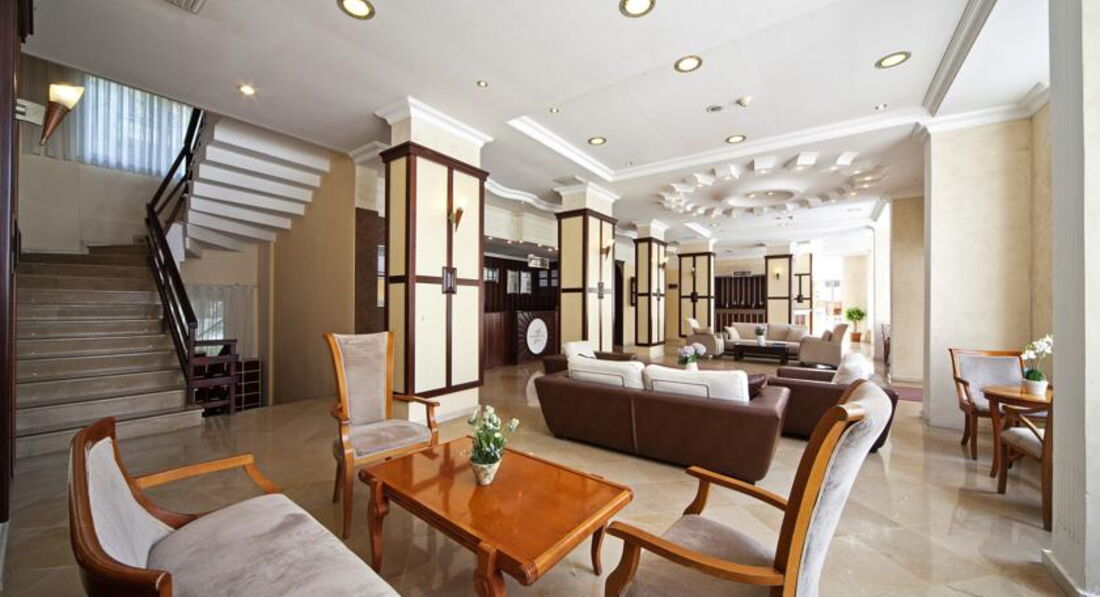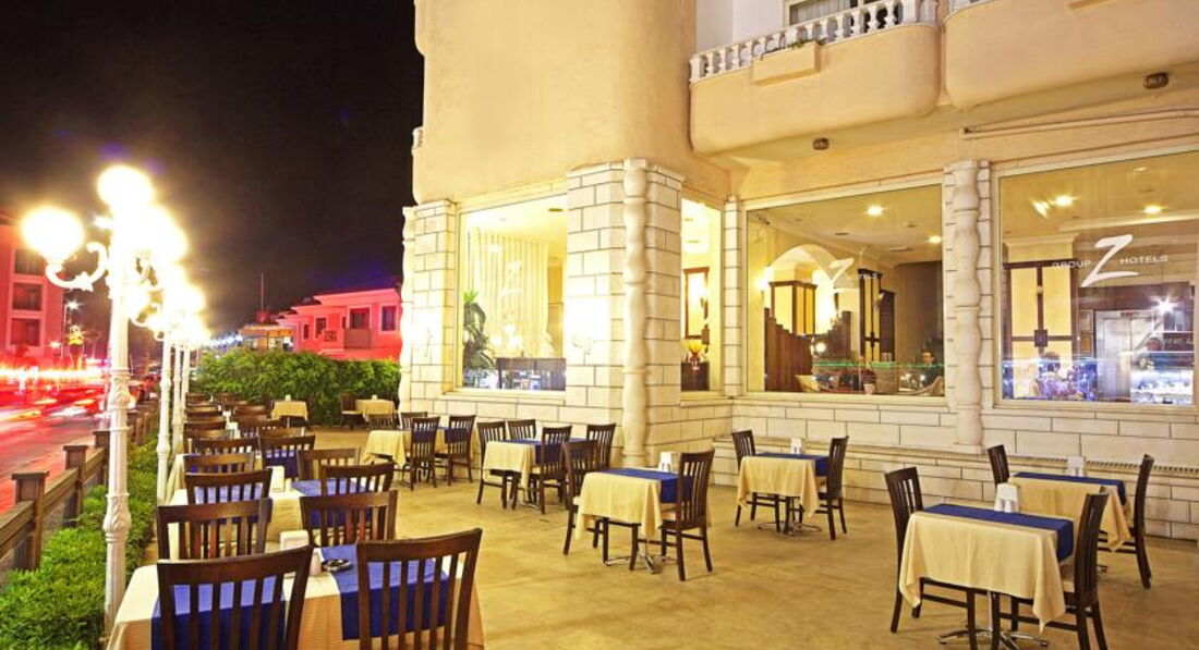 Отель оставил двойственное впечатление. С одной стороны - отличное месторасположение : захотел пойти в центр, в порт, на рынок, в магазины, крепость...- идешь от отеля налево по променаду. Правда, непрерывный поток машин будет мешать насладиться морским воздухом . Повернув направо можно по тому же променаду дойти вдоль моря аж до Ичмелера. И здесь уже никаких дорог, только море , бесчисленные кафешки и отели. Купаться мы уходили именно в эту сторону, поскольку городской пляж рядом с дорогой не вызывал даже желания лезть в воду. От отеля возят на отличный пляж Нирвана с очень чистой водой. Не зря он отмечен Голубым флагом. Понравился персонал в отеле - очень доброжелательный, готовый помочь при любом случае. При заселении сразу поменяли нам предложенный номер, окна которого выходили на дорогу, на номер с видом на порт без всяких препинаний и тем более денег. Нурали ( не знаю его должности в отеле), отлично знающий русский, отвечал на все вопросы и помогал советами. К уборке особых претензий также не возникало. А вот теперь про главный минус в моем восприятии. Про питание. Перед выбором отеля я как всегда читаю отзывы и положительные и отрицательные. Про еду многие писали в смысле " скудное ". " Капризничают "- думала я. "Нам - пожилым, неизбалованным будет проще". Ан нет. Даже не поймешь сразу - чего не так. На завтрак есть мюсли, молоко, сыр, брынза, яйца. Горячая картошка, например. Про свежие огурцы, помидоры , а также соленые оливки с солеными же огурцами я уже не говорю - они были всегда и на завтрак и на обед и на ужин. В обед суп-пюре и что-то горячее, сладости... В - общем, действительно,не хватало мяса, рыбы. Калорий. Два раза можно было взять жаренную хамсу и два раза - маленький кусочек курицы. Выдавали горячее два повара ( второй раз не подойдешь ). Честно, впервые с подобным столкнулись. Да, голодными не уходили. Наедались вкусным хлебом, сладостями. Вино и пиво в обед и ужин - пожалуйста; а тот же йогурт для тех, кто спиртное не хочет ? Благо рядом с отелем есть государственный магазин Migros, вернее его филиал. Основной где-то в 10 - 15 минутах ходьбы в сторону Ичмелера. Там мы и подкупали молочные продукты и овощи - фрукты. Кстати, в Migros можно расплачиваться долларами. Считают по выгодному для покупателя курсу. Сдачу дают лирами. В сухом остатке : если бы не питание - был бы отличный городской отель. А так и сама не знаю - поехала бы я сюда второй раз ?