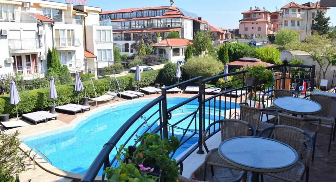 В Болгарии отдыхали первый раз. Выбирали место тихое и спокойное. Так оно и есть. Персонал приветливый. Оставляли 2 лев и белье меняли каждый день. Брали только завтрак - вполне сносный, нам понравилась выпечка... В ресторане сразу дали 10-ти процентную скидку, но мы ходили в город...там очень много кафе и не дорого. Вино в основном сухое. Один раз искупались ночью в бассейне - никто слова не сказал.)))) Одним словом СУПЕР! Да, и море совсем рядом.... это важно!