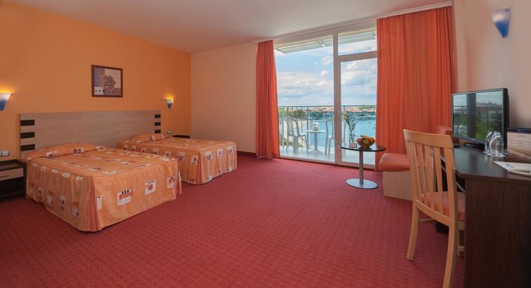 Отель действительно хорош. Нас приняли очень быстро несмотря на то, что мы приехали в 12 ночи. Быстро поселили. Номера небольшие, но довольно удобные и уютные, убирают хорошо – вид на пляж (кстати, который рядом) просто сказочный. Правда, картину портят некоторые хостес, которые отказываются говорить на русском и английском и парят какую-то фигню на болгарском. Если бы я не был в Болгарии раньше – ничего бы не понял.