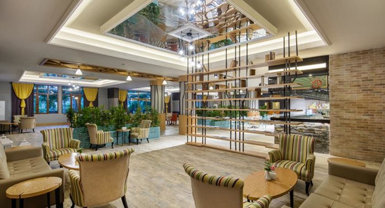 Отдыхали в отеле семьей (2 взрослых, ребенок 2 лет) конец августа, начало сентября. Большой отель, очень много народа. Заселение у нас проходило в 2 дня, общение с гидом 1 раз за 14 дней. Территория красивая, большая, очень много зелени, цветов. В «столовую», по другому не скажешь, т.к. за едой были очереди, столик надо занимать заранее, мест не хватало. Когда давали отварную куру, все кто с детьми были там, кормить детей было НЕЧЕМ!!!!!!!!!!!!!!!!!!! Супруг повредил ногу на море, обратились к врачу при отеле. Врач опытный за доп. плату вопрос был решен быстро, но пока мы там были при нас человек 7 обратилось с отравлением. Отдыхать в данный отель ехать не советую, ни в каком составе.