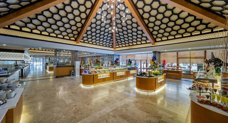 Бари та ресторани: головний ресторан розрахований на 2500 осіб, критий; працює з 07:00 до 21:30; бар на пляжі (10:00-18:00), бар біля басейну (10:00-24:30), лобі-бар (цілодобово), диско-бар (24:00-03:00), Piano Bar (16 :00-24:00) - безкоштовно. 3 ресторани A"la Сarte: китайський, італійський, рибний - відвідування кожного ресторану по одному разу за тиждень проживання безкоштовно.