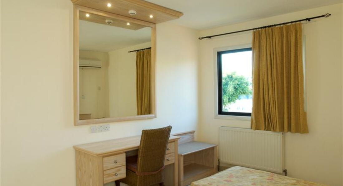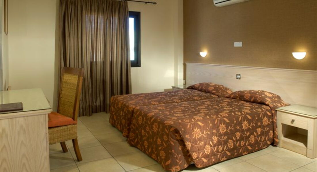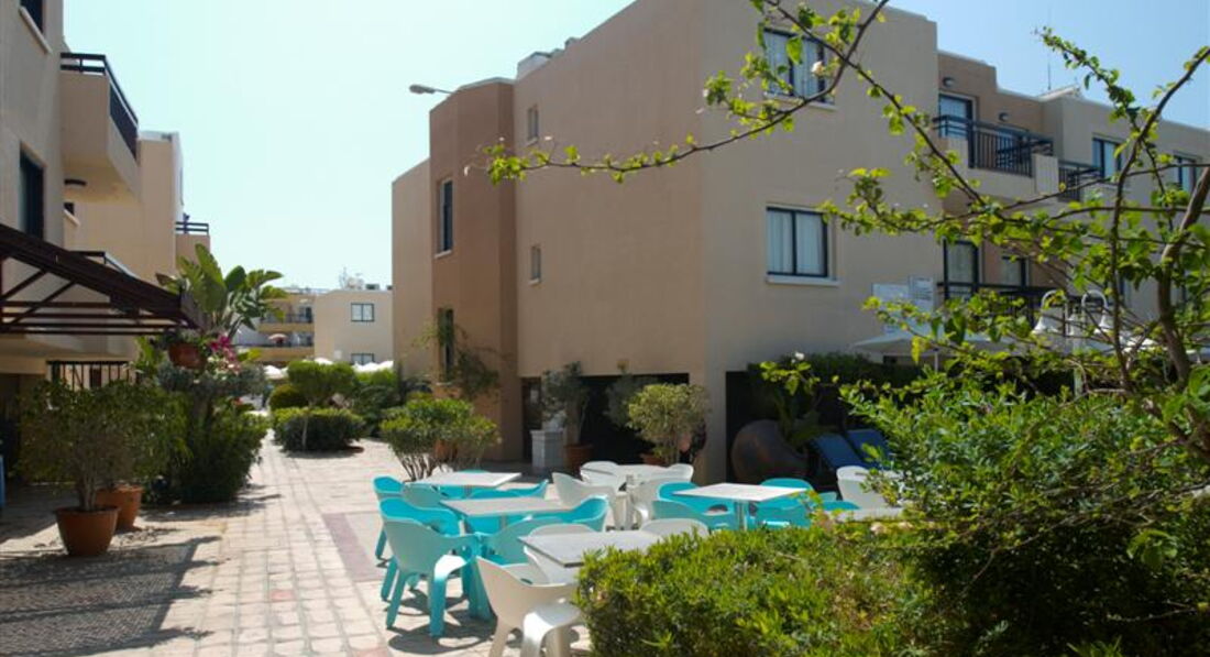 Отель ориентирован основном на иностранцев, русскоговорящего персонала нет.Все говорят только на английском. До пляжа далеко. на такси 8 евро в одну сторону,. ходит автобус,но до него идти минут 15. До центра минут 20 в одну сторону. Возле отеля тишина, только ездят машины. Отель чистый, номера большие,двухкомнатные со всеми удобствами. Есть в номере посуда,плита, чайник,тостер, холодильник бесплатно. За кондиционер и пульт от телевизора необходим депазит по 10 евро, сейф платно+ 4 евро депазит,который по выезду возвращается. Питание брали завтрак,ужин. Завтрак скудный, посуда показалась не совсем чистая. На ужин каждый день предлагается новое меню,не Шведский стол... порции большие, но еда на любителей. Персонал работает в ресторане плохо. Обслуживают мужчина и девушка. Девушка,как правило за баром,а мужчина ходит языком только работает, таким образом развлекая отдыхающих. Сначала это даже нравилось,но потом начало напрягать. Особенно злые на него остались после отъезда. Выезжали в аэропорт в 6 утра, а завтрак позже, попросили его собрать нам бокс с завтраком, так как вылетали из Пафоса,дорога дальняя, да и вылет только в 12 часов дня.... Утром спросили про завтрак,оказывается он про него забыл....Самого его не было, а на ресепшене только развели руками...и ничем помочь нам не смогли....конечно, мы не остались голодными,купили еду себе сами, но просто было очень не приятно....ведь были заплачены за это деньги.