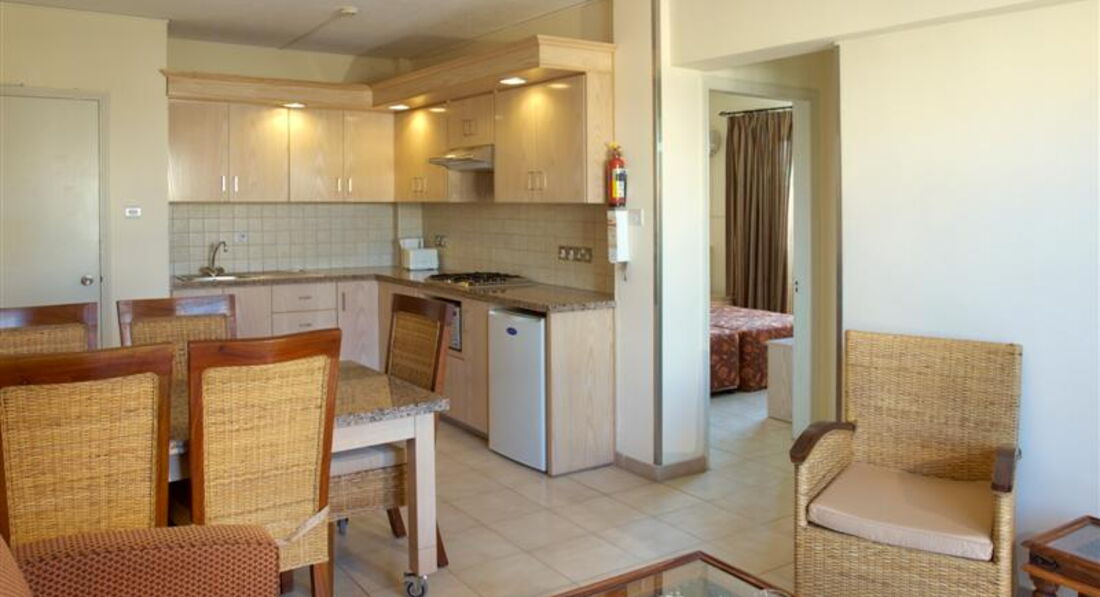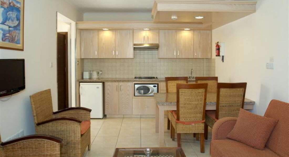 Отличный отель, отдыхали там в октябре 2013. Заселили в прекрасный номер, просторный. К Вашим услугам (брали Studio) кухня с плитой, посуда, микроволновка, холодильник. Убираются на совесть все дни кроме воскресенья.