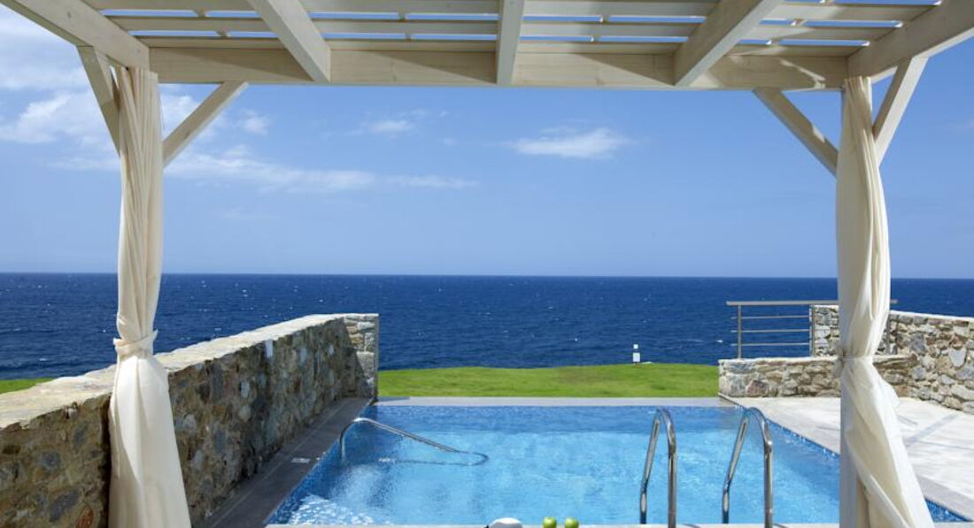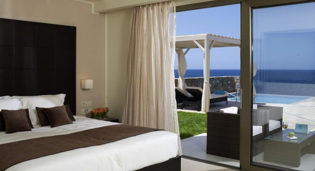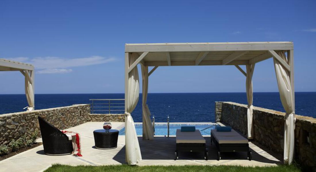 Royal luxury suite water front private pool (прямий краєвид на море, спальня та вітальня, двоспальне ліжко або 2 односпальні, доп. – софа, ванна кімната з душовою кабіною, приватний басейн, макс. 4 чол., 80 м2),