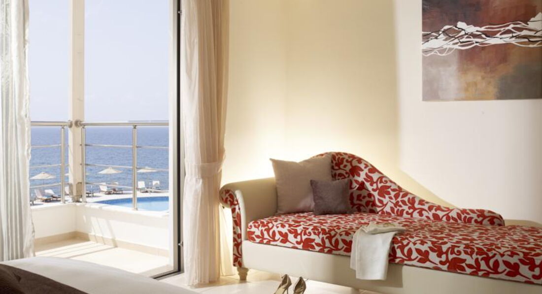 superior suite waterfront with jacuzzi (прямий вид на море, спальня та вітальня, основне ліжко – двоспальне або 2 односпальні, дод. – софа, ванна кімната з душовою кабіною, джакузі на балконі, макс. 4 чол., 55 м2),