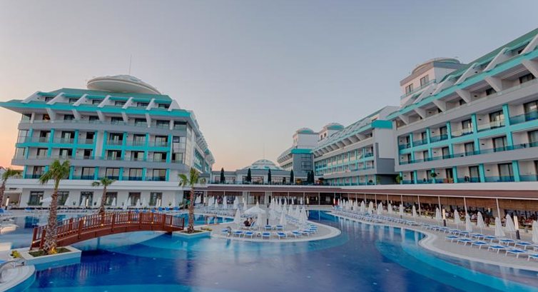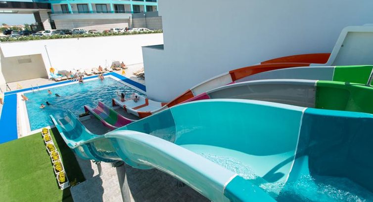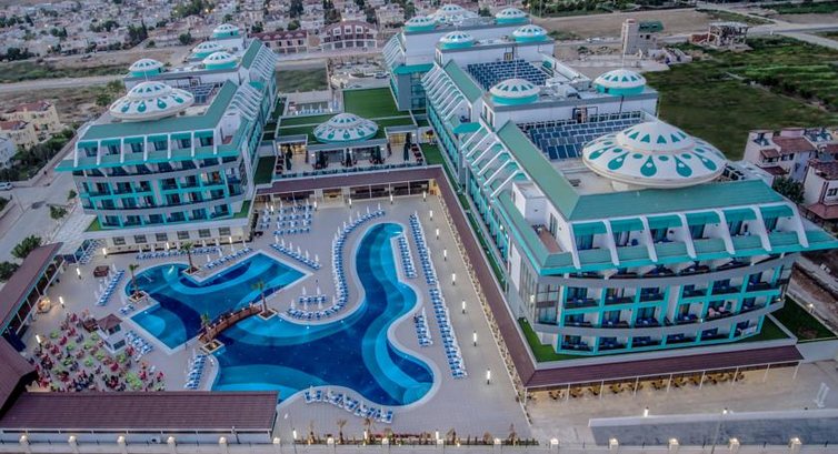 Отдыхали в отеле в апреле 2017 года. Перелет составил примерно 3.5 часа из Внуково авиакомпанией Россия. Самолеты новые, кормят одним хорошим сэндвичем и напитки. Получить багаж, а так же, найти свой трансфер в аэропорту не составило большого труда. Ехали по живописной природе Анталии до отеля примерно минут 40. Встретили в отеле хорошо, багаж сразу выгрузили, одели браслеты. Прибыли мы примерно часов в 11-00 утра и примерно минут через 30 нас уже заселили в номер. Так как в отеле круглосуточное питание, то мы сразу по приезду позавтракали. Отель очень современный, работает всего год. Ресепшн говорит на английском, русском, немецком и естественно, на турецком. Поселили нас в третьем корпусе с видом на море (в агентстве нам предложили доплатить за это отдельно, но мы отказались) и город – чем мы были очень довольны, на момент приезда, в отеле было мало гостей, позже стало в два раза больше. Отель украшен летающими тарелками, ночью они светятся. На всей территории и общих этажах есть туалеты, в близи бассейнов душевые и отдельные раздевалки, оснащенные автоматизированными сушилками, полотенцами, датчиками света и, даже спиртовыми дизинфекторами для рук.