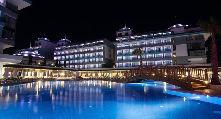 Только вчера вернулись из отеля. Отдыхали неделю с мамой. Приехали в отель поздно вечером, когда только подъезжали, было видно световое шоу на крыше и номерах отеля, которое включают ежедневно, когда стемнеет. Смотрится просто потрясающе. Когда вошли в холл отеля, были поражены роскошным интерьером и убранством, очень красивый дизайн отеля и номеров. Уже через 10 минут нас проводили в номер, служащие очень доброжелательные и позитивные. Номера шикарные, в каждом номере стандарт есть одна двуспальная кровать т одна односпальная. Номер большой, ванная с туалетом в мраморе и красивом кафеле, есть шампунь, мыло, гель для душа, лосьон для тела, салфетки, белые халаты и тапочки. Уборщица пополняет каждый день. Уборка хорошая, все всегда чисто, постель меняли 2 раза за неделю. В номере есть минибар, он бесплатный и пополняют его каждый день. Также есть чайник, кофе, чай и сахар. Дизайн номера также замечательный, все в подсветке, есть сейф. Питание. Я была в десятке стран и в отелях разного уровня, но здесь питание лучшее. Десерты вообще отдельная глава, каждый как кулинарный шедевр. Питание круглосуточно, бар в отеле круглосуточно. На пляже и в снек-баре у бассейна также каждый день шведский стол до 17 часов: закуски, гамбургеры, хот-доги, фрукты, десерты и тд. Из фруктов каждый день и везде: арбузы, дыни, яблоки, груши, сливы, винограл, мандарины, лайм, фреши на завтрак.Отдых у нас выдался роскошный, сервис порадовал. Также есть бесплатная сауна, паровая и хамам, куда можно прийти после пляжа и расслабиться. Работает с 9 до 21. Недалеко от отеля есть супермаркет А101, цены там в лирах, лучше идти туда с лирами, иначе они считают по невыгодному курсу при оплате в долларах. Также есть рынок, цены обычные для Турции. Анимация в отеле с утра до вечера, стрельба из ружья на пляже, волейбол, различные аэробика и танцы у бассейна. Вечером различные шоу. Минус-маленькая территория, зато все под рукой. До моря пешком 5-7 минут по ровной, вымощеннрй плиточкой дорожке мимо местных коттеджей с фруктовыми садами. Пляж большой, лежаков всегда всем хватает, места тоже. Заход немного с камнями, впермешку с песчаным дном. Могу сказать одно-отдых у нас был чудесный! Понравилось все! Отель открыли 3 месяца назад и цена на него была нуу очень привлекательная! Думаю на следующий год будет значительно выше. Если хотите ехать в этот отель-даже не раздумывайте, вперед!!!