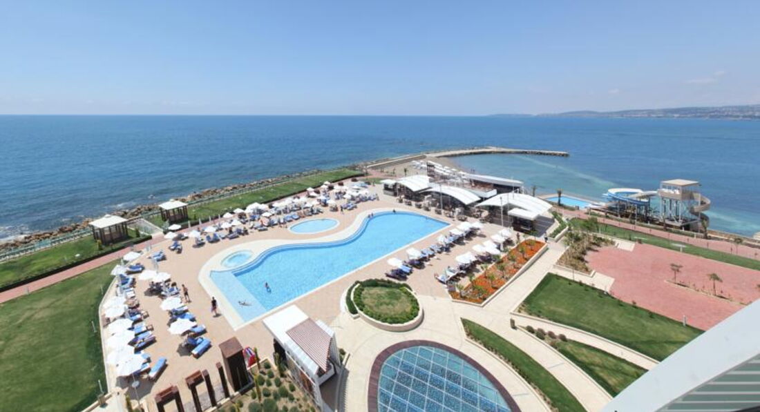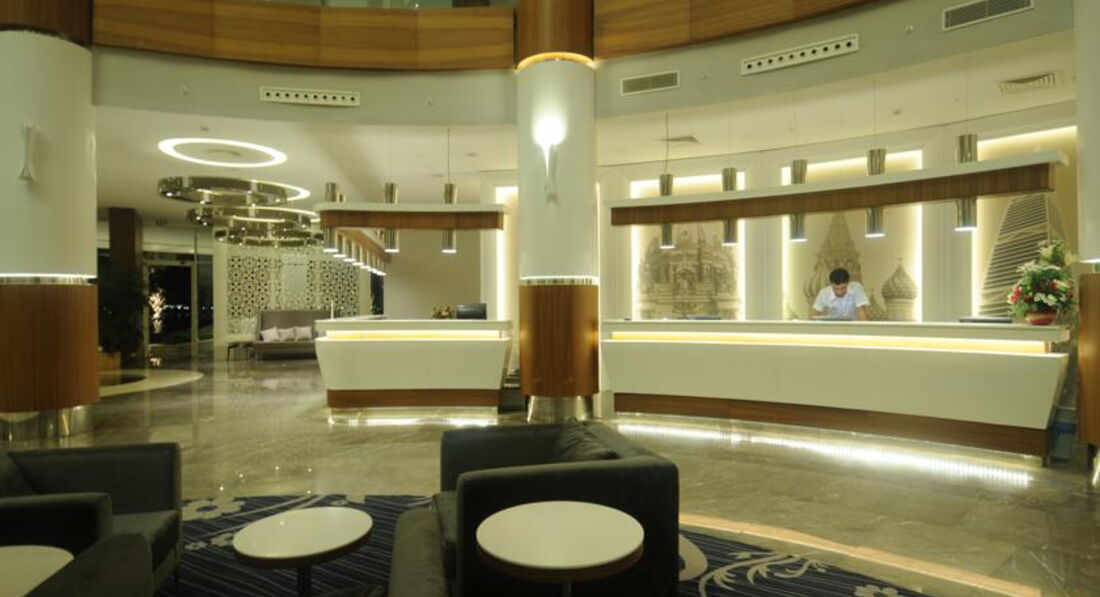Были с подругой в конце маня начале июня 2017 года. Общие впечатления. Красиво, просторно, в номерах все как описывают, как на картинке. По еде бывало и лучше в 5. Особо не выбирали, отзывы не читали, зацепило, что рейтинг 8,9 и три пляжа при отеле. Приехали народу мало, в основном одни пассивные иностранцы, анимация хромает, детская только на высоте. Прожили половина отпуска узнали, что по вечерам бывают представления, оказывается к аниматорам надо подходить и спрашивать что будет, никакой информации нет. До обеда дарц, после обеда дарц, один раз видела, что в водное поло играют. Ладно хоть есть горки водные около каждого корпуса. С семейными парами познакомились, говорят тоже скукотища. На дискотеку ходят только русские и то 2-7 человек, мы одни раз пошли, пока вышли покурить приходим, дискотека уже свернулась. Бар основной находится в главном корпусе, работает до последнего клиента, но говорят не шумите все спят, дак нахрена вы делаете бар, где нельзя шуметь??? Сидели потихому попивали)))