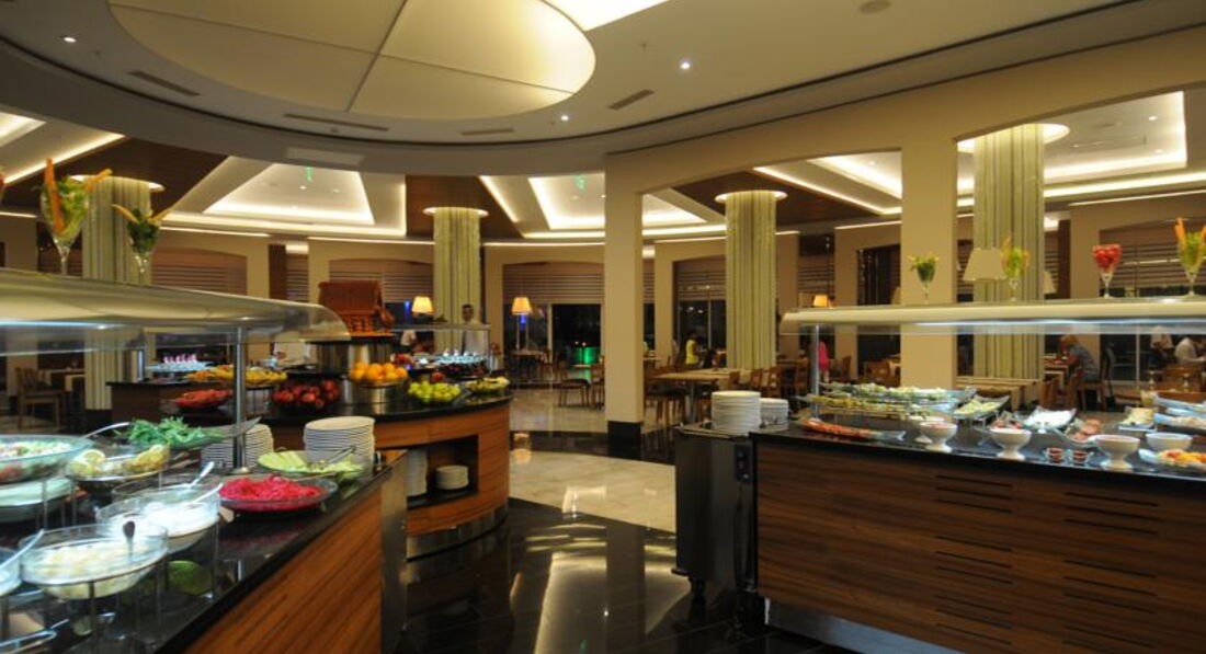 Были 08.10.2014 на 13 ночей шесть человек 2-детей и 4-взрослых. Заселили как положено в 14-00(приехали где то в 12 -00 ) сразу одели браслеты и в хорошем смысле поторопили на обед потому что зал уже вот вот закрывался. Номера отличные, питание супер, фрукты, овощи всё на уровне. Мои Тёща с Тестем в Турции 8-раз и далеко не в дешевых отелях жили но по питанию разнообразия такого нет нигде. Про море и пляж везде всё пишут (шикарное и море и песок) с многих отелей ходили к нам на экскурсию, территория для меня маловата это единственный минус хотя если это можно назвать минусом. Братьев славян (соотечественников по СССР) мало где то 15% от всей массы проживающих и то это русскоговорящие немцы, прибалты. Отель нешумный нам с детьми 2х и 3х лет было комфортно, потусить там не выйдет только спокойный респектабельный отдых. в 2015 едем туда снова но уже на 18 ночей привет вкусному пиву свежим овощам фруктам и лишним килограммам)))