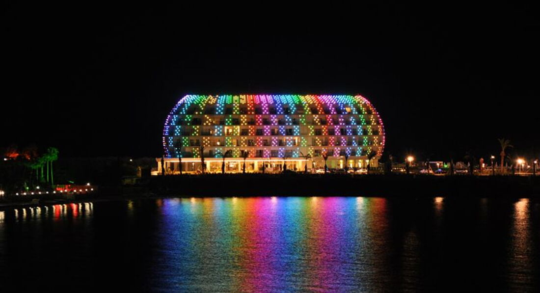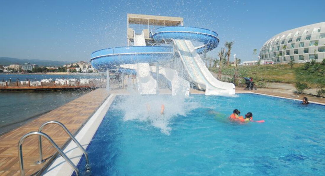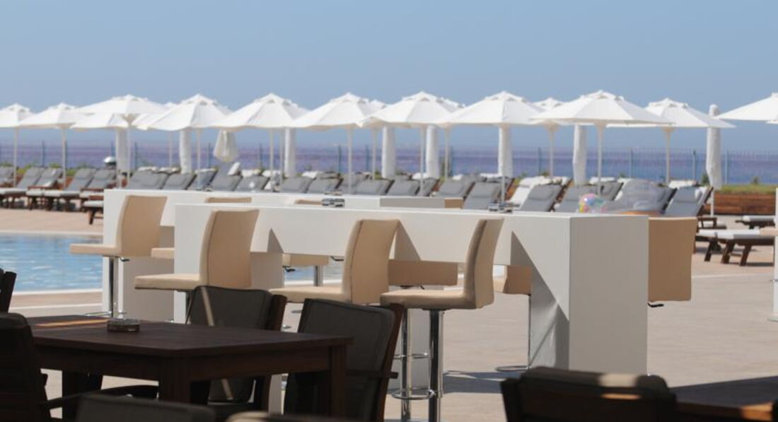 Была в этом отеле в 2013 году. Отелю тогда было около 2-х лет. Понравилось все. Присоединяюсь ко всем положительным отзывам. Необычный дизайн. Красивый рецепшен. Качественные еда и напитки. Номера современные, просторные, светлые, с панормаными окнами , огромным балконом и хорошим видом. Море видно было с кровати. Отель ориентирован на европейцев, отсюда и качество обслуживания. Пляж отгорожен волнорезом от основной акватории, волн практически нет. Можно заходить с берега, можно с пирса. Бассейн с горками расположен отдельно от основного бассейна, рядом с пляжем, что очень удобно. Вечером можно погулять по длинному песочному пляжу вдоль соседних отелей.и полюбоваться видом на отель, переливающийся огнями. Кстати, хоть весь отель в подсветке, это никак не ощущается в номере.