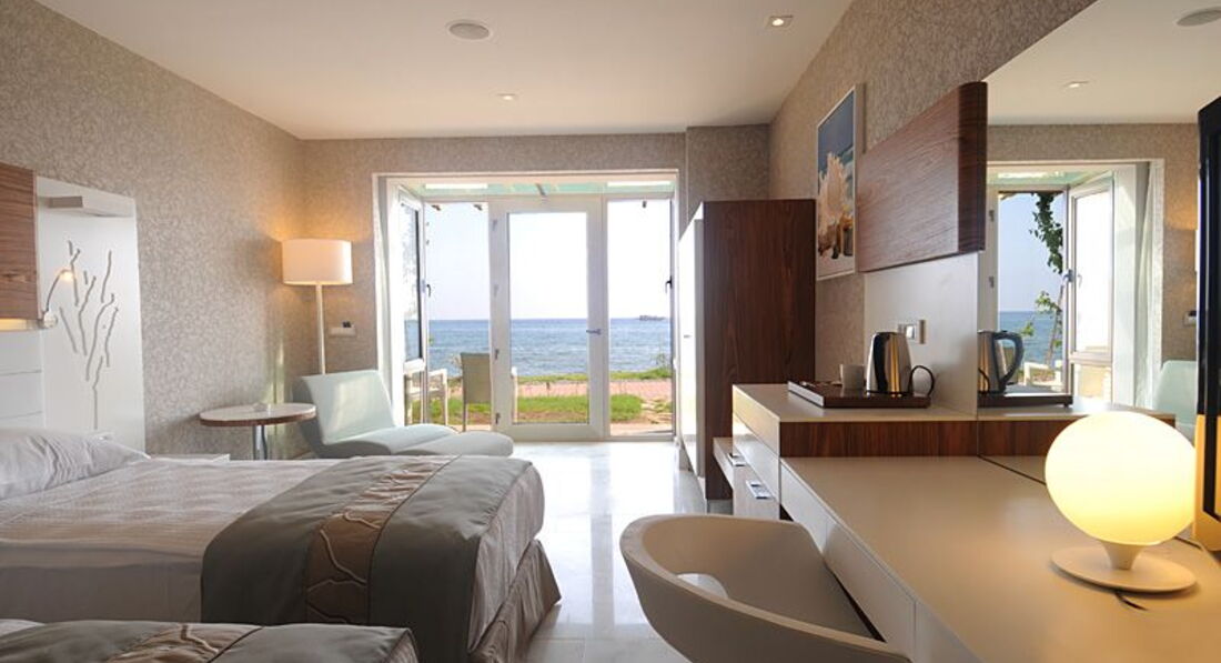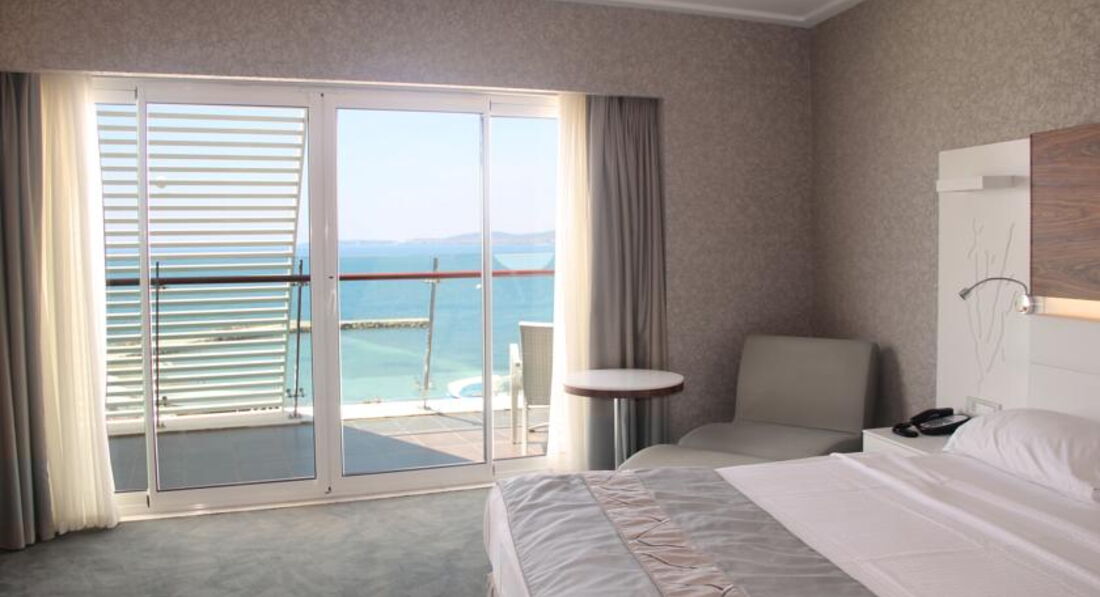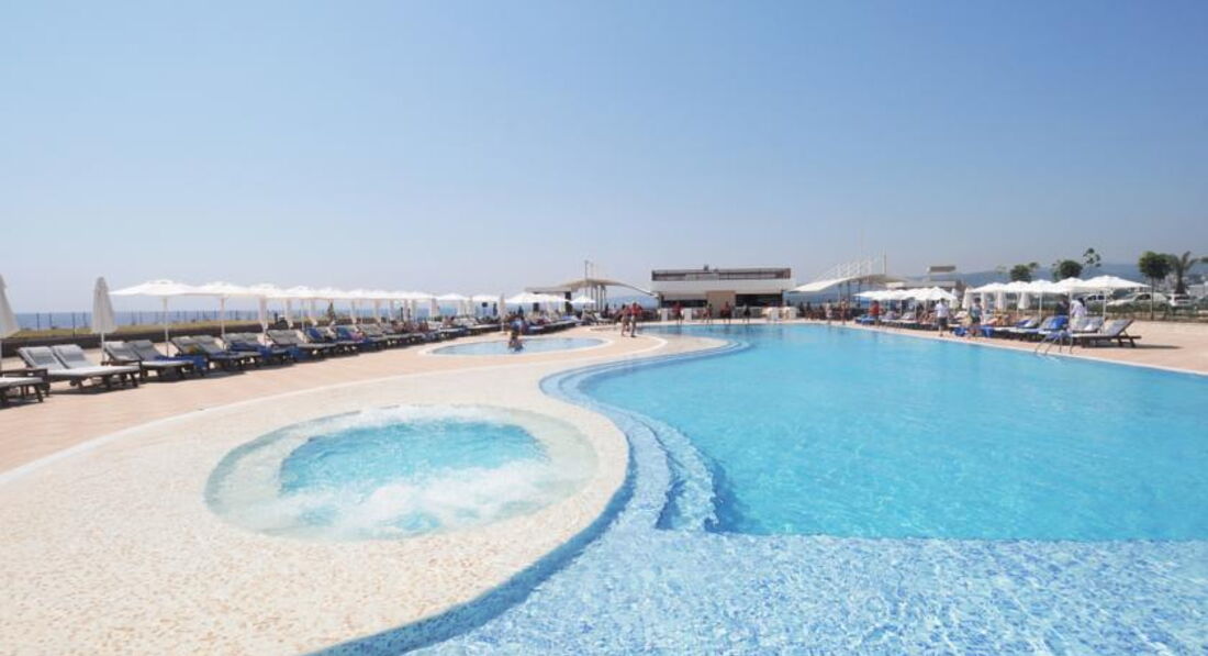 Отдыхала в данном отеле с 26 апреля по 24 мая.Отель очень красивый,современный.Ночью светится вякими огоньками.Номер люкс.Мебель современная,плазменный телевизор.Уборка номера производилась ежедневно.Территория не большая,но чистенькая.Пляж отличный.Песок.Море прелесть.Бухта.Лежаков всегда хватало.В здании бассейн с подогревом.Питание очень хорошее.Готовят вкусно.Много фруктов.У нас почти каждый день была клубника.Соки,пиво всё вкусно.Несколько видов мороженого.Сервис отличный.Нет толпы и очередей за едой.Всё спокойноЕдинственное,что хотелось бы,так это вечерняя анимация была бы по интересней и разнообразнее.Большое спасибо работникам отеля за отлично проведённый отпуск.Я обязательно сюда ещё вернусь.
