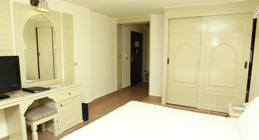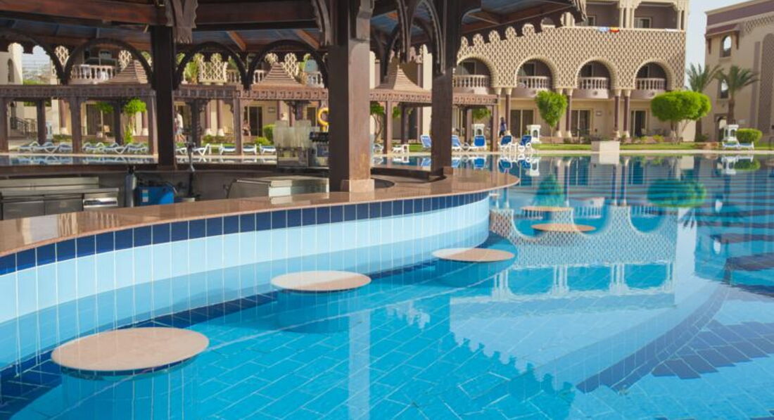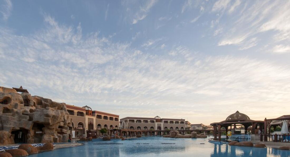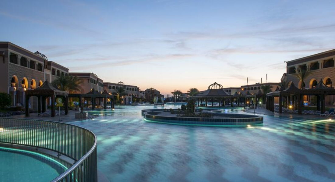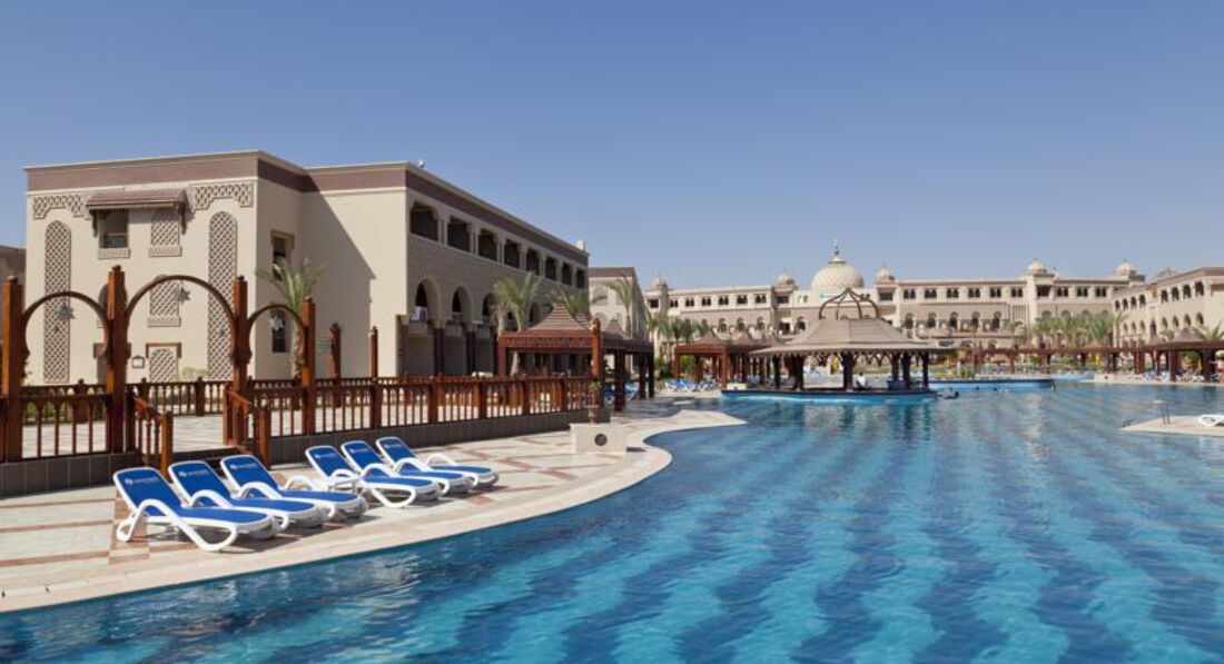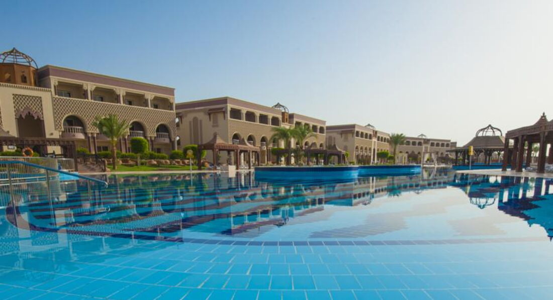 Отель выбрали по совету друзей,они отдыхали тут недавно и убедили,чтобы мы другое место даже не искали,хотя если честно сначала рассчитовали на более скромный бюджет,но годовщина все же,поэтому решили не экономить.На ресепции стояли уже около десяти часов,нам сказали ,что надо подождать вроде есть свободные номера и через час нам его уже дали.Внутри нас все устроило,мебель и сантехника очень добротные,нормальный шкаф,вешалок много,кондиционер работал без сбоев,уборка неплохая, вид из номера на бассейн,особенно красиво вечером ,когда включают подсветку,в общем жить вполне можно.Территория большая,ухоженная,много зелени,корпуса опрятные,можно ходить на территорию соседнего отеля,где есть очень неплохие горки и тоже много интересных и красивых мест для фото.Для активных людей есть все,что надо,мы например играли с мужем в волейбол,есть футбольная площадка,спортзал с тренажерами,но правда туда мы не ходили,в бассейне проводят аэробику,водное поло,зарядка на пляже.Кстати до пляжа нам было идти минут пять.Мы приходили рано,поэтому два свободных лежака рядом были всегда.Пляж чистый,за ним хорошо следят,мусор быстро убирают.Вход в море отличный,вода прозрачная и теплая,рыбок видели много разных,иногда подплывали целые стайки,короче все супер.С питанием тоже нет никаких проблем,нам всего хватало,выбор есть всегда,ну может говядина пару раз была жесткой,но это я придираюсь.Понравился очень рис,реально вкусный,у нас наверно такого просто нет,выпечка утрення отличная,вечером тортики тоже ничего,про гриль я вообще молчу,извините,что все в кучу.Из отельного алкоголя мы пили только пиво,муж всегда берет с собой три-четыре бутылки нормального,вроде до пяти литров можно.Вечерняя анимация нам понравилась,постоянно что-то новое,иногда были просто реальные большие представления разной тематики,да и к соседям всегда можно сходить ,посмотреть,что там у них.{удалено модератором: несанкционированная реклама} Недалеко от отеля есть большой торговый центр,где можно прикупить что-то из местных продуктов на пробу например или набрать недорогих футболок или кепок,там много всего и цены фиксированные,без накруток,банкомат есть,деньги снимали без проблем.Еще сделала вывод,что основная часть негативных отзывов об отеле ,это летние,когда было очень много местных,сейчас этой проблемы нет,арабы есть конечно,но их не много.Так что могу прямо сказать,что отель всем рекомендую,подходит для всех,от пенсионеров до семей с детьми.