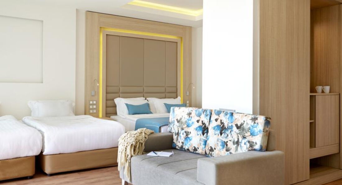 208 family suites (45м2, вітальня та спальня, міжкімнатні двері, макс. 4 чол.).