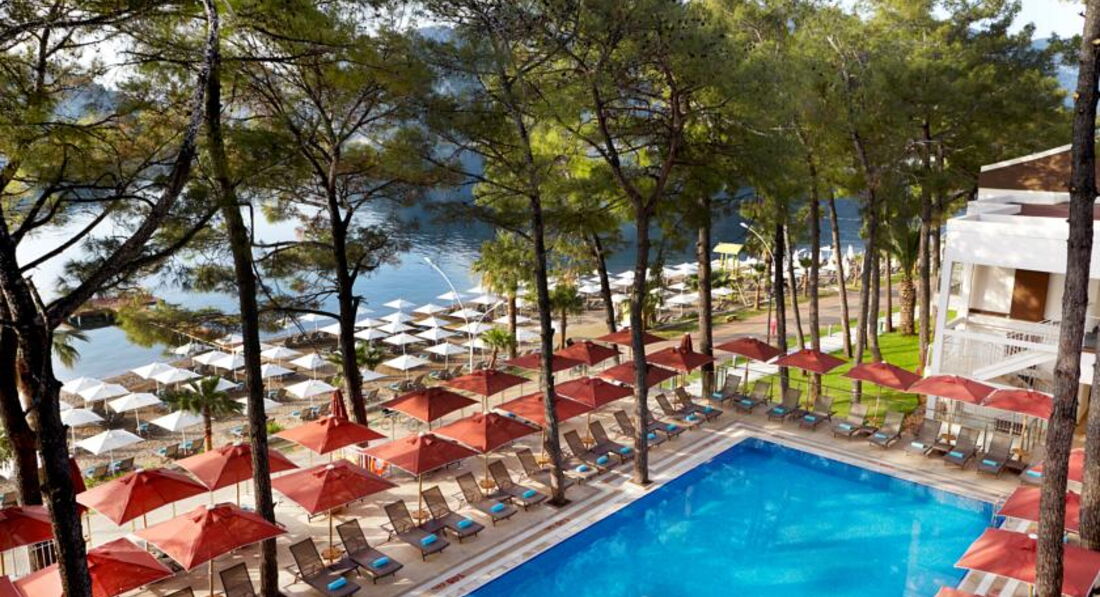 Были с мамой в этом отеле неделю. Отель замечательный, природа вокруг завораживает) Каждый день есть чем заняться, ходили гулять в Ичмелер и Мармарис ( до Ичмелера пешком мин 20, до Мармариса мин 50) но возле отеля есть остановка и ходит автобус ( на нем очень быстро 5-10 мин, стоит 1$)