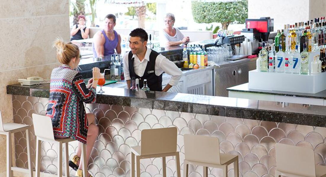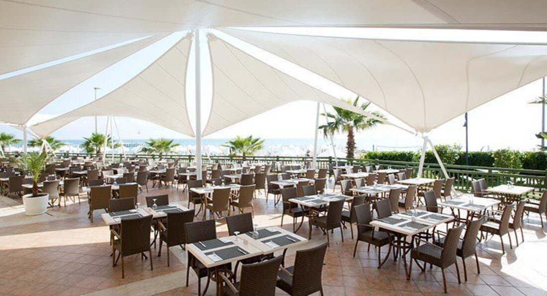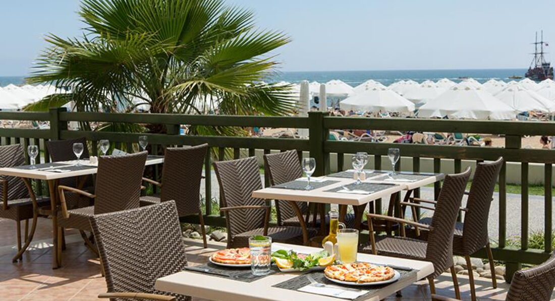 Бари та ресторани: головний ресторан розрахований на 780 осіб (критий, з кондиціонером, літня тераса, дитяче меню, дієтичне меню, дитячі стільці), лобі-бар (18:00-24:00), бар біля басейну (20:00- 24:00), бар на пляжі (10:00-18:00), диско-бар (23:00-02:00) та ін. 5 ресторанів A la Carte: китайський, італійський, турецький, рибний, барбекю - відвідування кожного з ресторанів безкоштовно 1 раз на тиждень, за попередньою резервацією.