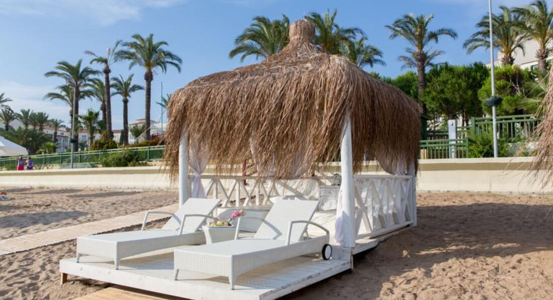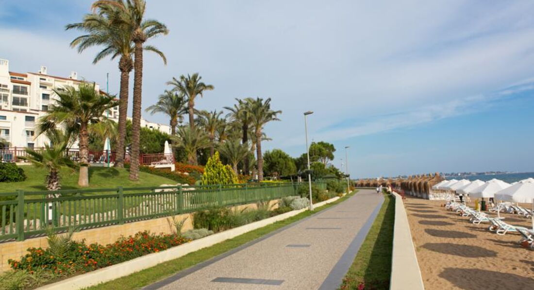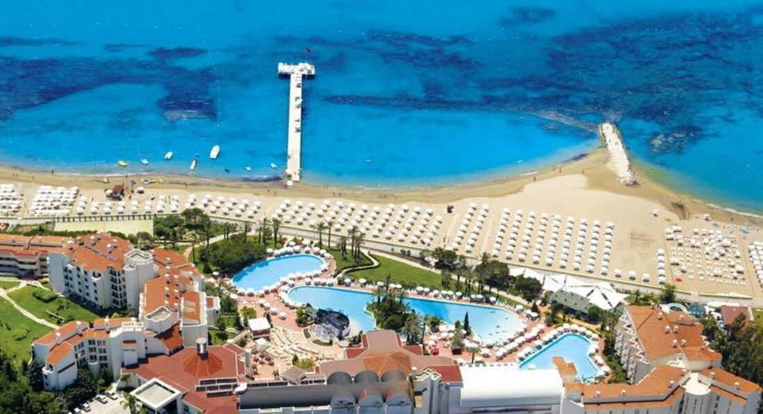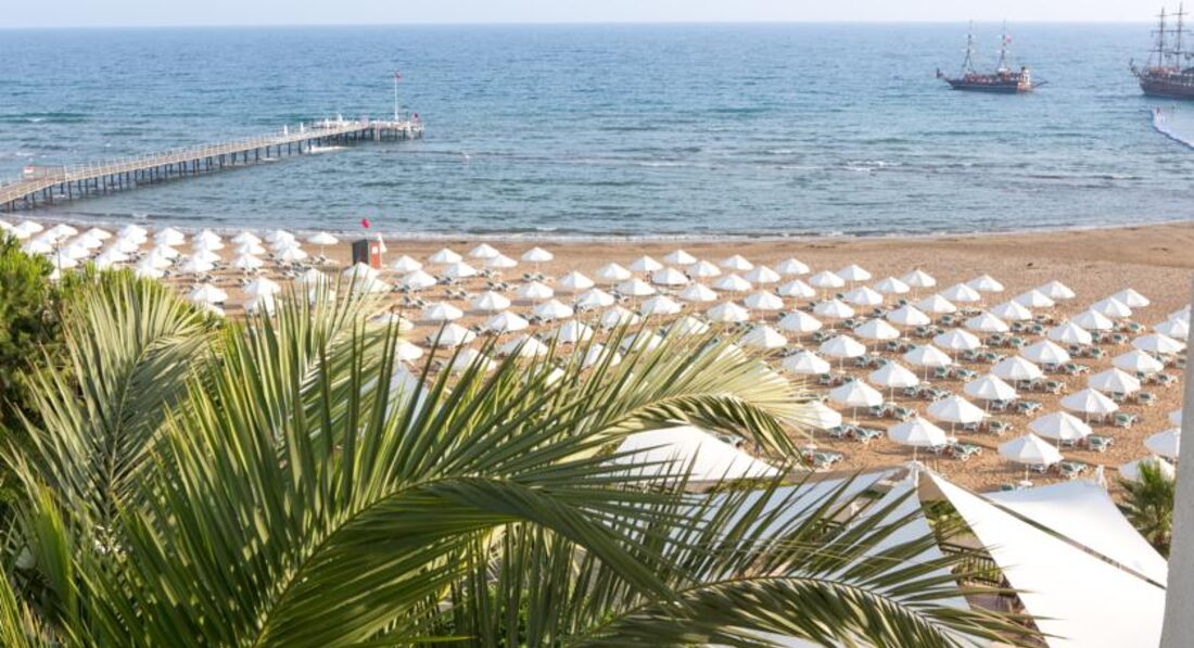Посетила данный отель в конце апреля. Отель абсолютно новый, номера, постельные пренадлежности, сантехника, рестораны-бары, интерьер, шезлонги и тд. все свежайшее и придраться не к чему. Так как капитальный ремонт и некая перестройка были произведены в марте месяце. Теперь первый нюанс. Номера расположены загадочным образом, мы свой искали 20 минут. Потом еще 30 минут ждали носильщика с чемоданами! И это не шутка. Такое первый раз наблюдаю в Турции, хотя это уже пятая поездка в эту страну. Второй нюанс это то, что мы были ЕДИНСТВЕННЫЕ русские за всю неделю проживания в отеле. Отель исключительно немецкий. Надписи на немецком, весь персонал говорит на немецком, анимация тоже на немецком. Для нас это не было проблемой, так как знаем именно этот язык. Но реально к концу отдыха стало немного напрягать. Ощущение, что ты в Германии уже не покидало) Аниматоров очень много в отеле, но развлекать, извините, некого. Были какие-то шоу минут 30-40 и иногда живая музыка на открытой террасе, но немцев не раскачать. Так что развлекает каждый себя сам) Все остальное на 5+. Номер был прекрасный, убирали, пополняли бар и принадлежности для душа регулярно, тапки в номере тоже были. Номер был улучшенный с балконом. Стандарты все с французским балконом, точнее без оного. Питание на любой вкус и готовят просто прекрасно: куча вариантов мяса, птицы, рыбы, были морепродукты(креветки, мидии),язык,даже роллы один раз давали, про закуски, овощи и фрукты вообще молчу, всего было в избытке, мороженое тоже было и мед в сотах. Я не любитель турецких десертов, но в этом отеле они просто сказочные. В кофейне давали пироженые типа чизкейков,сырные соленые пироженые,тирамису, был шоколадный фонтан и тд. За завтраком, обедом и ужином обслуживают официанты. Мы даже ни разу не принесли себе сок или кофе, просто не было такой возможности. Напитки тоже выше всяких похвал в барах и ресторанах. Если не успел пообедать, то можно было выбрать еду по меню. Все приготовят и принесут официанты. Обслуживание на высшем уровне. Персонала нереальное количество. Пляж очень большой, лежаков хватит всем, даже в самый разгар сезона, заход в море отличный. У бассейнов тоже изобилие лежаков. Спа салону тоже пятерка. Расположение отеля очень удобное. Рядом автобусная остановка и можно съездить в центр Сиде и Манавгат. Пешком можно дойти до всяких лавок, магазинов, баров, кафе и тд.