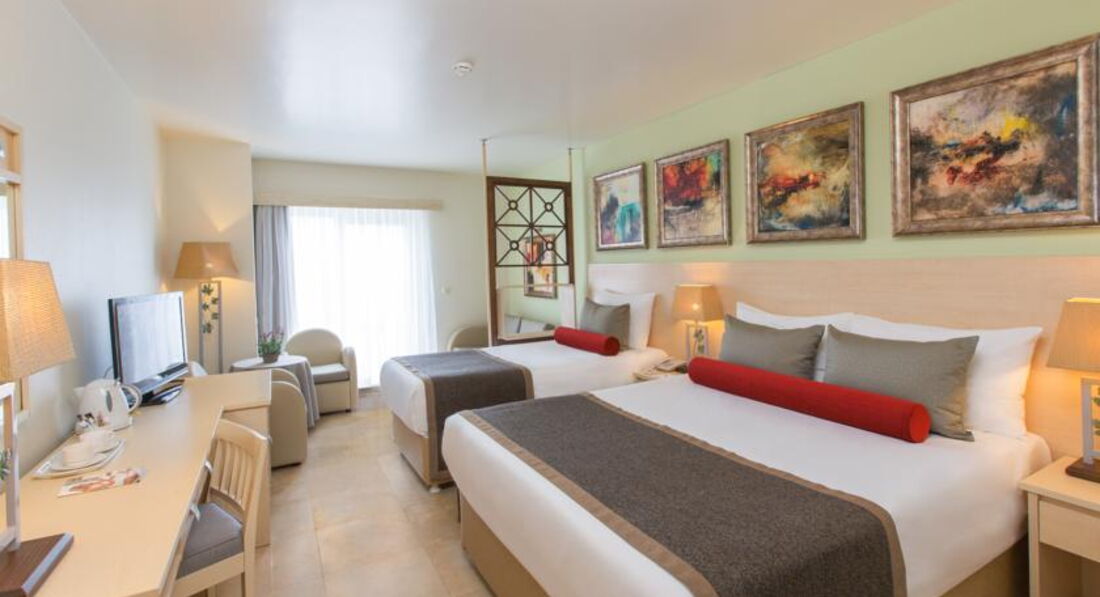 Начну по порядку. Трансфер от аэропорта занял не более 1,5 часов (с учетом заездов в другие отели). Отдыхали большой компанией, 4 семьи, на всех 5 детей. Возраст деток от 10 месяцев до 9 лет. Привезли нас рано утром, номера, естественно, не были готовы (всем известно, что номера готовы с 14-00). На ресепшне нам любезно предложили пройти на завтрак и после завтрака подойти обратно. 2 номера дали практически сразу, 2 пришлось ждать до 13-00. Ну скажем, это совсем мелочи, тем более объективные. Номера просторные, каждому предоставлено свое спальное место (нас было 4 человека). В номерах телевизор (есть русскоязычные каналы), чайный набор, просторный шкаф и сейф. Про уборку: у друзей убирались каждый день, причем делали различные фигурки из простыней и подручных материалов. У нас к сожалению не каждый день, и без излишеств. Но не напрягало. Бар обновляли каждый день, бесплатно.