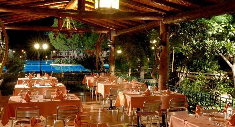 Бари та ресторани: головний ресторан розрахований на 250 осіб (критий, з кондиціонером, літня тераса, дитяче меню, дитячі стільці), бар біля басейну (19:00-21:00), гарден-бар (10:00-01:00) ). Ресторан A la Carte: рибний – безкоштовно, за попередньою резервацією.