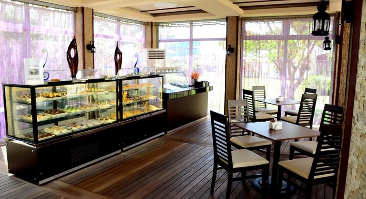 Хит всей программы - кондитерская. Работает с утра и до вечера. Всегда есть 5-6 видов мороженого, а так же два холодильника с десертами, которые еще и меняются в течении дня. Это отдельное здание, там довольно прохладно уютно и тихо.