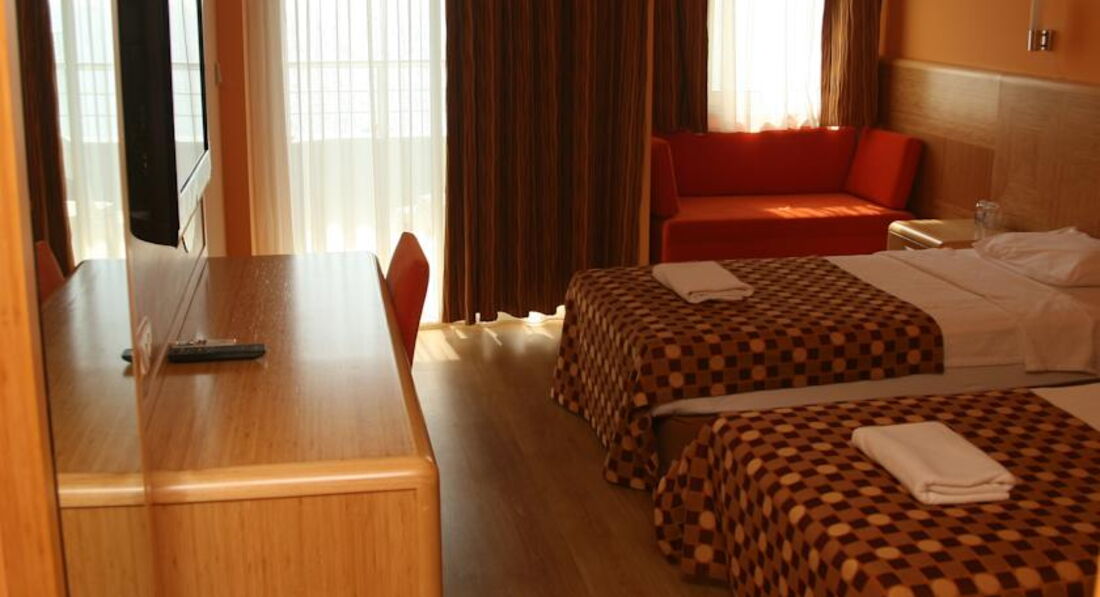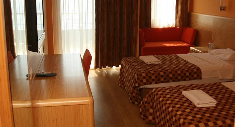 Отдыхали в июне 2017г. Приехала с сыном 12 лет в 11.30, заселили ровно 14.00 (спрашивали раньше, сказали не готовы комнаты). Номер с видом на море и бассейн на 2 этаже, вечером шумно, но нам это не мешало. Про номер: ловит вайфай из лобби), можно не ждать лифт и подняться по леснице, всё работало (ТВ 3 канала; холодильник-только когда мы в номере,т.к. при уходе забираешь электронную карту и номер обесточивается, хотя в некоторых номерах постоянно работал; сантехника вся исправная и в хор.состоянии; фен есть; из мыломойки мыло и шампунь, если закончился надо сказать на рецепшен и тогда принесут еще; уборка каждый день; смена постельного 3 раза за 9 дней; полотенца всего 3- большое, маленькое и для ног; на балконе 2 стула, столик и пепельница. Пляжные полотенца платные, аренда одного 2$, чтобы заменить еще 1$. Мы купили 2 большущих на рынке 2 шт по 7$. Питание: завтрак и ужин разнообразные, обед скуднее (хотя муж посмотрел видео отчет с обеда и сказал, что мы зажрались)))). Курица и рыба каждый день, мясо пореже (но это же 4*!!!) Помимо ресторана на пляже снек бар с 11-17.00 и у бассейна с 11.30 гузлеме-нац. лепешки с творогом и зеленью. Всегда доступна кофе машина, вода, разводимые из порошка соки и различные газ. напитки, спиртное тоже есть, про качнстао сказать не могу, не пила. Всегда были яблоки, апельсины (кисловатые, на базаре за 1 лиру за кило- просто сказка) , грейфрут, арбузы или дыни, через раз сливы. На пляже при заходе в воду есть каменные природные плиты, что затрудняет вход в воду. Но есть и участки и без них. Мы ныряли с пирса. Анимация работает на славу. Персонал вежлив и готов прийти на помощь. Экскурсии от тур.операторов очень дорогие. Слева от отеля в 20 метрах продаёт экскурсии Мустафа, в разы дешевле, на качество предоставляемых услуг это не влияет. Брали 3 разные: рафтинг, джип-сафари и историческую. Не могу сказать какая лучше, все классные. Может повторюсь но, Не берите бесплатные шоп туры от тур операторов, потерянное время, т.к. цены там куда они везут завышены!!!!