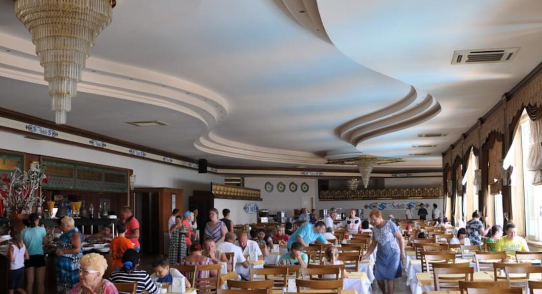 Что касаемо питания в отеле. Утром: каши,йогурты,блины,яичница,печенье,халва,овощи,сыры,колбасы... вообщем,всего достаточно! На обед:супы пюре,2 вида, картофель,рис,макароны,рыба,курица, печень... вообщем,перечислять долго,хватало всего и всем! Самое приятное,что не было очередей и суеты! И порадовали соотечественники-научились таки себя достойно вести! Не видела тарелок у сограждан в виде картошка+рис+макароны +мясо+рыба и булочка сверху!))) Посуда во всем отеле всегда чистая,без щербин! Напитки подают в стекло или пластик под стекло,которого всегда хватало! Приятно смотреть на чистый и ухоженный персонал отеля,такое не в каждой пятерки можно встретить! Работают быстро и тихо!))) Ресторан находиться на 7 этаже, две террасы с видом на море -очень красиво! С лифтами проблем не было!