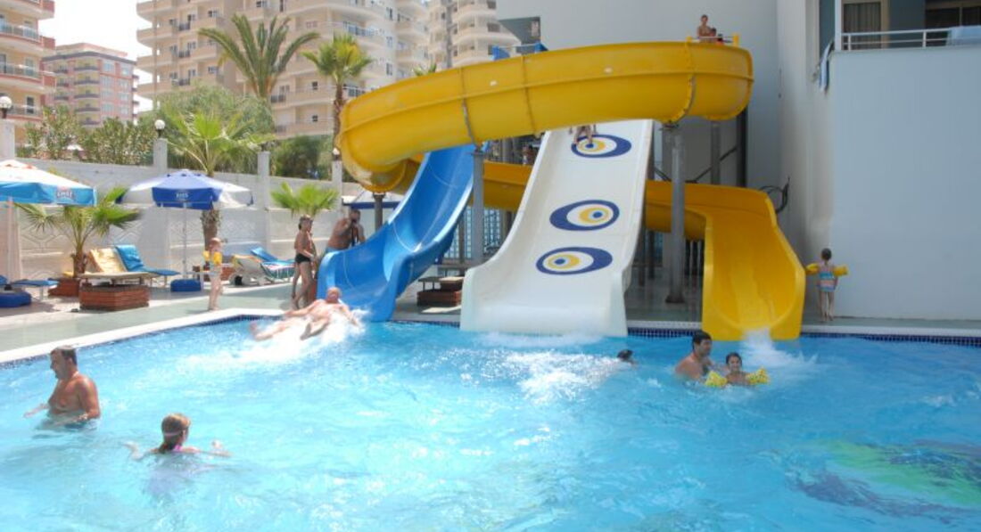 При отеле есть небольшие горки,их три.Работают в определенные часы.Анимационная команда первую неделю как мы отдыхали была супер, не давали скучать,на второй неделе отдыха практически всех аниматоров поменяли,стало скучновато.Самый доброжелательный-Уфук, шеф анимационной команды.