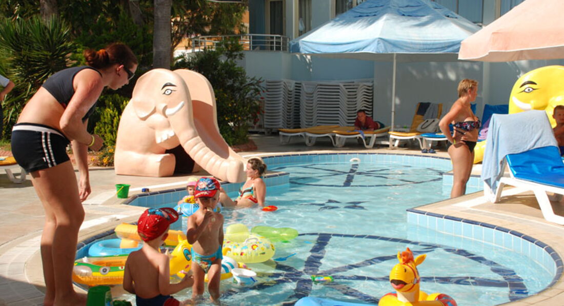 Всем привет)Были в этом отеле с 16 по 23 мая.В Алании уже второй раз, поэтому мы были в курсе,что ехать 3 часа. Отдыхали семьей,мама,я и моя дочь 8 лет.Для детей всё есть и анимация,и детская площадка,и детский бассейн.В целом отдыхом остались довольны,но подвела немного погода...было облачно и даже дожди (((Но загореть всеравно успели.Море холодное для меня лично было...в основном проводили время с ребенком на бассейне.