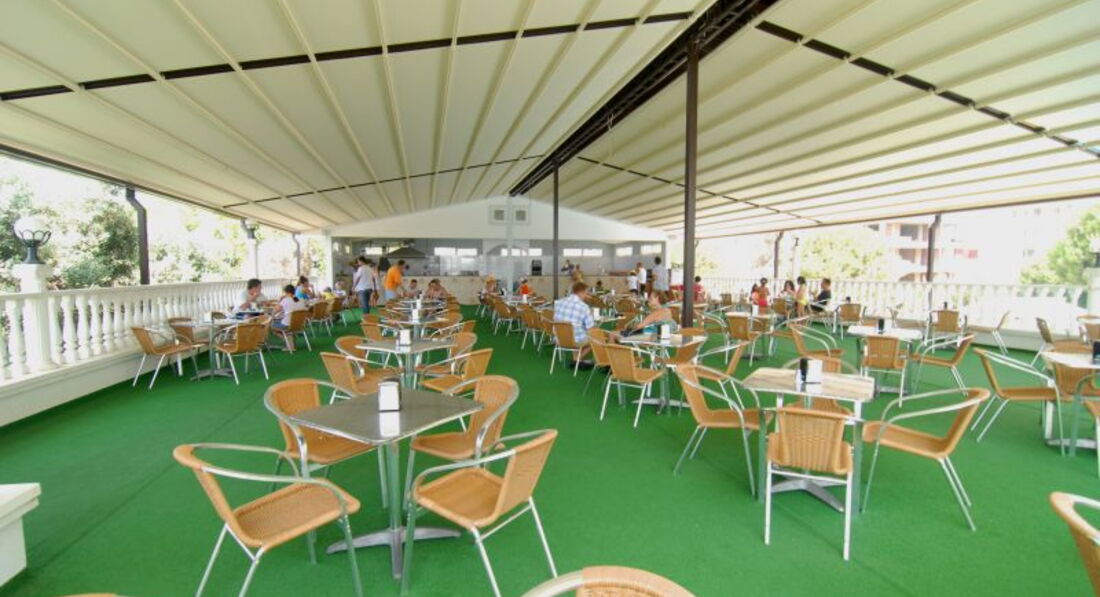 В ресторане звучит приятная музыка. При желании можно кушать на открытой террасе, расположенной на крыше отеля и наслаждаться видом моря, гор. Меню разннообразное (большой выбор блюд для детей). На пляже и около бассейна всегда можно сытно покушать.