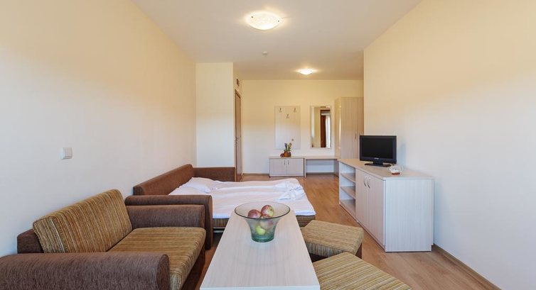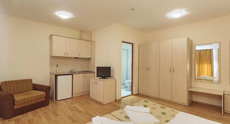 Studio Superior – однокімнатні: двоспальне ліжко або два односпальні ліжка та розкладне крісло, обладнаний кухонний блок (плита, витяжка, мийка, холодильник), макс. 2 дор. + 1 дит., 39 м2;