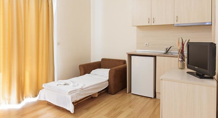 Studio Standard – однокімнатні: двоспальне ліжко або два односпальні ліжка та розкладне крісло, обладнаний кухонний блок (плита, витяжка, мийка, холодильник), макс. 2 дор. + 1 дит., 32 м2;