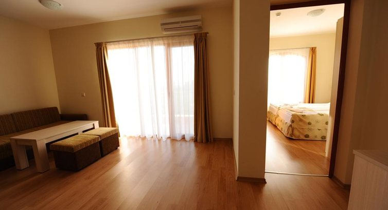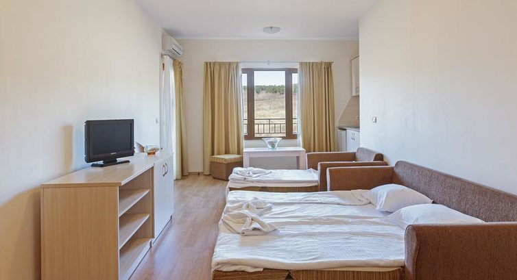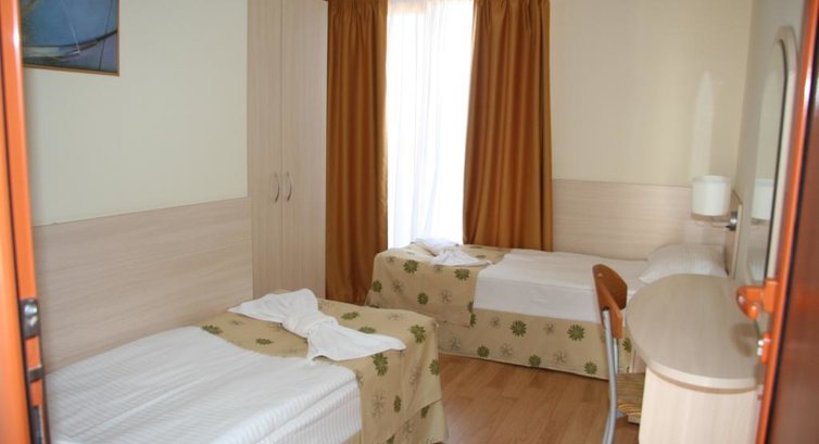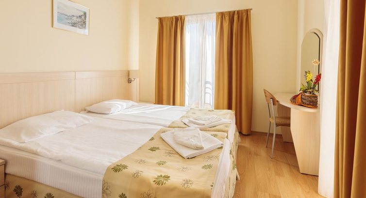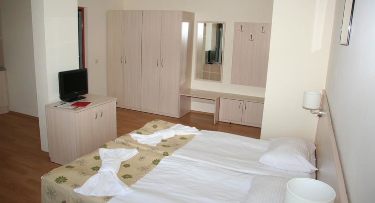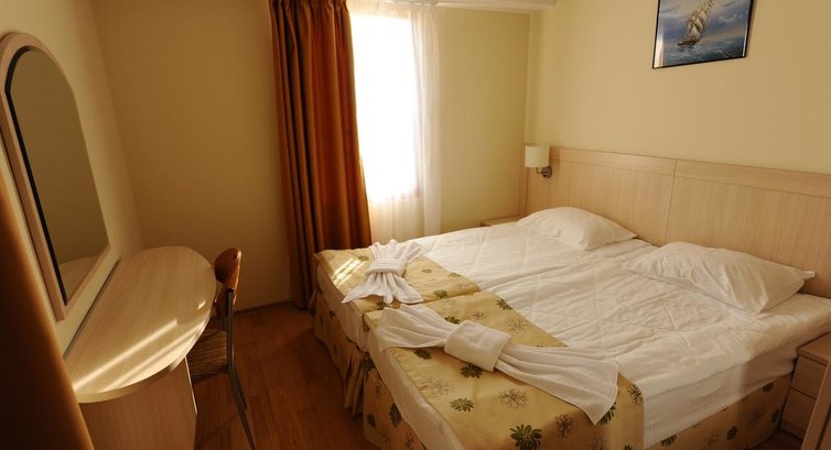 2. Отель. В хорошем состоянии. Хорошие большие номера. Хорошая мебель, небольшие плоские телевизоры с 2 российскими каналами в том числе. Территории нет. Небольшой бассейн. Дорога до пляжа - асфальт, исключительно до данного отеля. Средним шагом - 7-8 мин. Не напрягает совершенно. Отдыхающие - на 80-90% болгары, остальной состав - Украина, Россия.