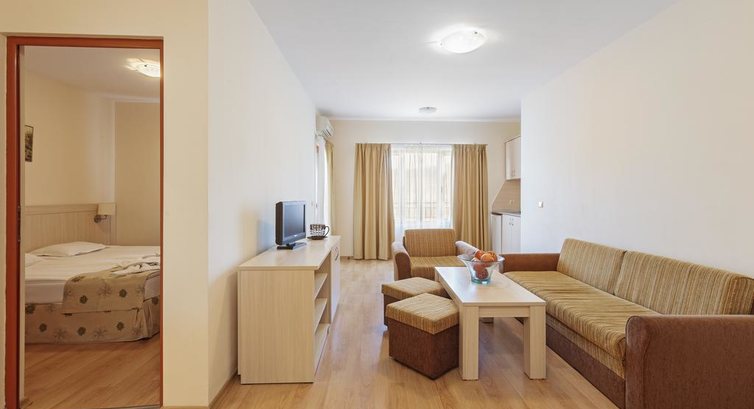 One Bedroom Apartment – спальня з двоспальним ліжком або двома односпальними ліжками та хол з розкладним диваном, обладнаним кухонним блоком (плита, витяжка, мийка, холодильник), є міжкімнатні двері, макс. 4 дор., 43-47 м2;