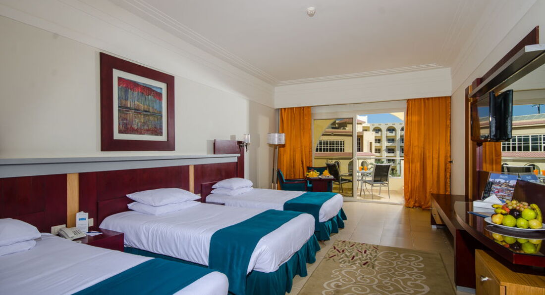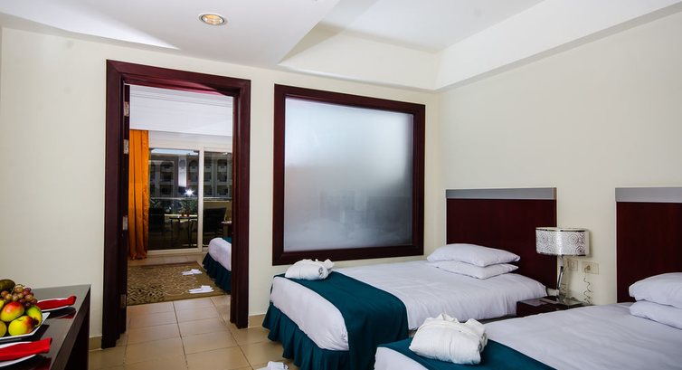 Отдыхали с ребенком 7 лет. Приехали в отель в 7 утра, предложили разместить сразу за 14$, так как мы были уставшие согласилась.В течении отдыха видела как многие семьи ждали до последнего, спали прям у ресепшена на диванчиках. Одели браслеты разрешили позавтракать. Поселили на первом этаже, окна выходили на дорогу, в номере темно и на балконе бегали чужие дети. Когда попросила поменять номер сказали приходить в 12/00, пришла в 12/00 попросили подойти в 14/00. Ругаться не люблю, поэтому с улыбкой подошла в 14/00. Поменяли номер на 3-м этаже с хорошим видом на первый бассейн. Расположение удобное рядом и выход к морю и ресепшен и ресторан. Остались довольные. Номера убирали каждый день, постель тоже вроде меняли, делали фигурки из полотенец. В номере был фен, кондиционер, телевизор хороший и сейф, все работало исправно.