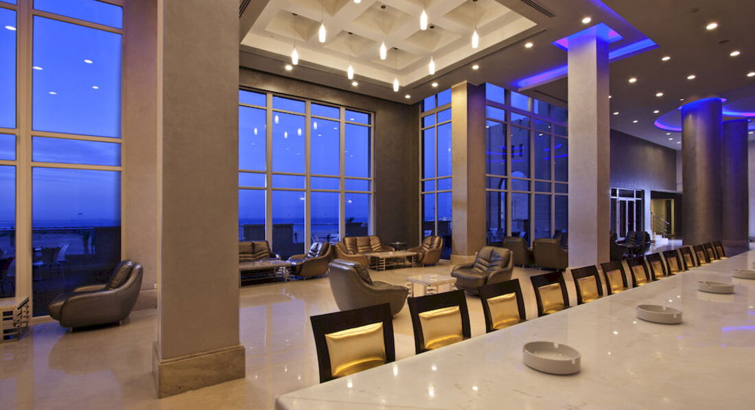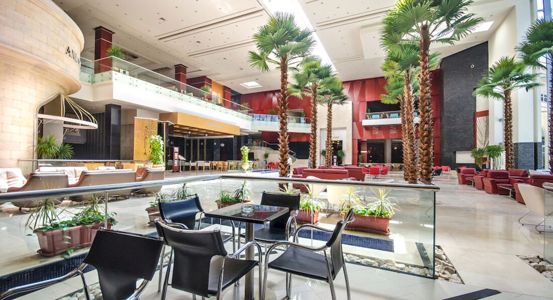 Здравствуйте! Хочу поделиться впечатлением о данной отеле. Приехали мы рано утром, но за доп.плату нас заселили сразу, с прекрасным видом с балкона.Конечно сказать,что все просто супер нельзя,НО общие впечатления об отеле сложились только положительные. Во-первый он очень красивый,хоть и небольшой. Свой бесплатный аквапарк ,лунапарк ( платно)но как раззнакомиться и договориться))) кстати,для тех ,кто любит погонять с горок,будьте осторожны мы чуть шеи не свернули) Зимой бассейны были холодные ,как и море,но думаю летом там очень хорошо. До моря далековато,но ходит открытый автобус на нем около 5 минут ехать (если не меньше), а так мы гуляли до моря через соседний отель,там кстати тоже очень красиво. Анимации на тот период,когда мы были небыло, только вечером детская. В основном время проводили в лобби баре (бесплатный wi-fi) Питание не сказала бы ,что очень разнообразное,но в целом выбор был, голодными никто не оставался (согласитесь ,что и мы на обед и ужин по 10 блюд не готовим). Так что могу сказать,что отель понравился! И возможно мы приедем туда еще раз!