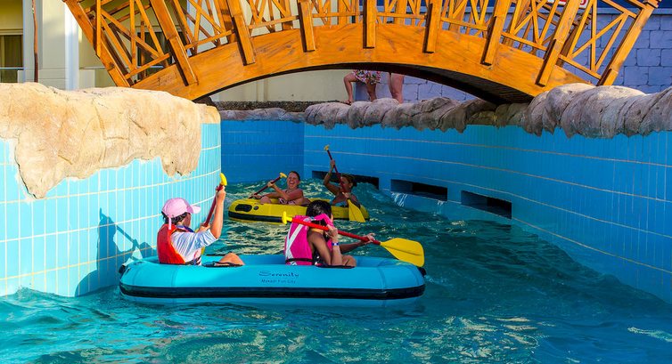 Аквапарк - ну тут конечно тоже круто, т.к. он бесплатный и пользуйся сколько хочешь, и это плюс по сравнению с соседними отелями, т.к. у них этого не было и к нам пускали только за деньги. Сплав по имитации бурной реки, ну вообще круто, однако мы не смогли пойти, т.к. младшему было 2,5 года, но со стороны смотрелось круто.